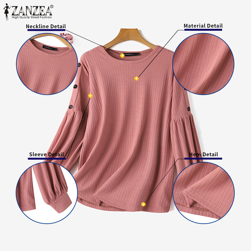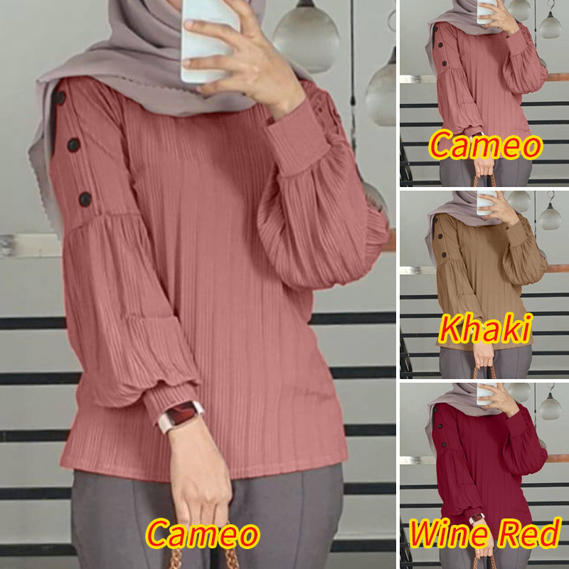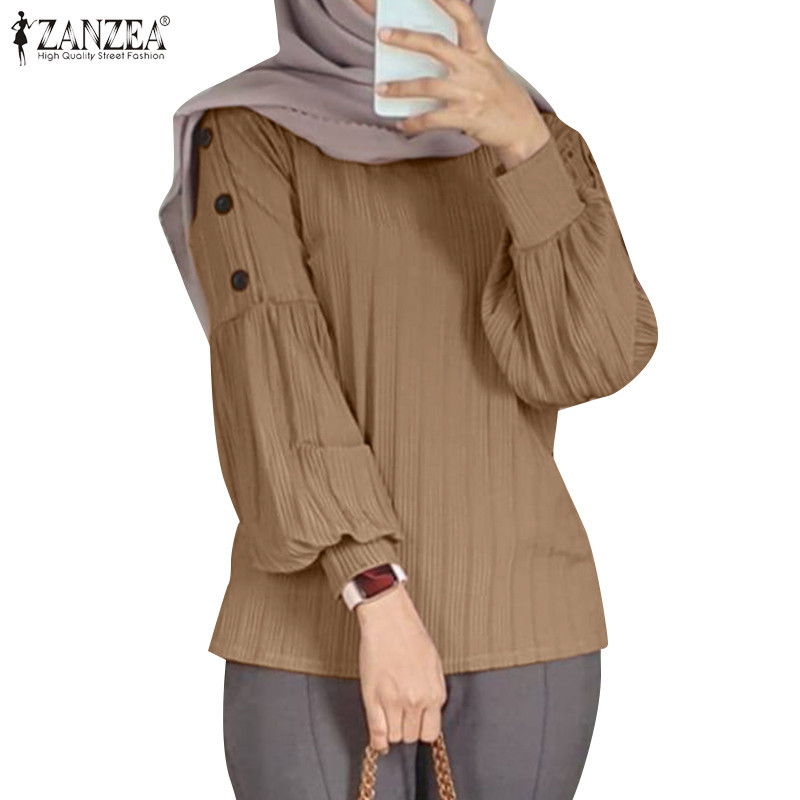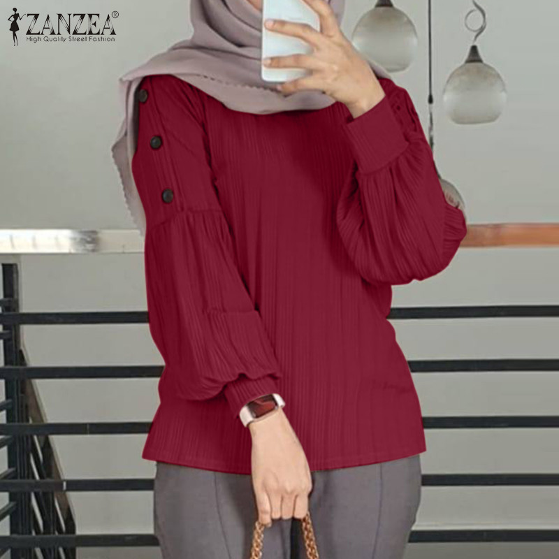 Zanzea เสื้อยืดลําลอง แขนยาว คอกลม ติดกระดุม สไตล์มุสลิม สําหรับสตรีมุสลิม