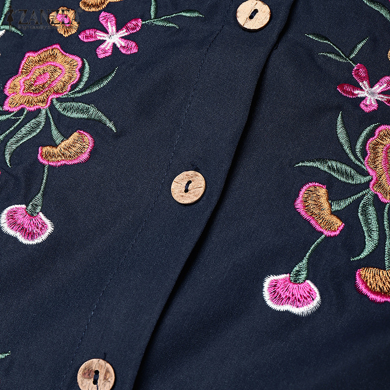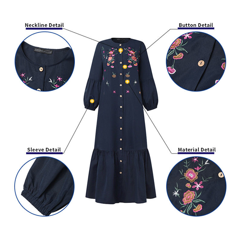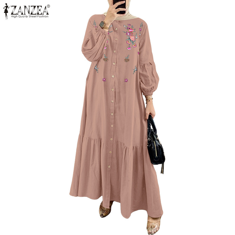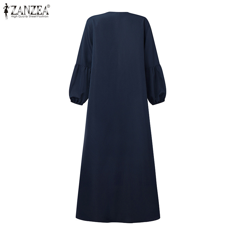 ZANZEA ซานเซีย ชุดเดรสยาวแขนโคมไฟเย็บปักถักร้อยแฟชั่นมุสลิมสําหรับผู้หญิง