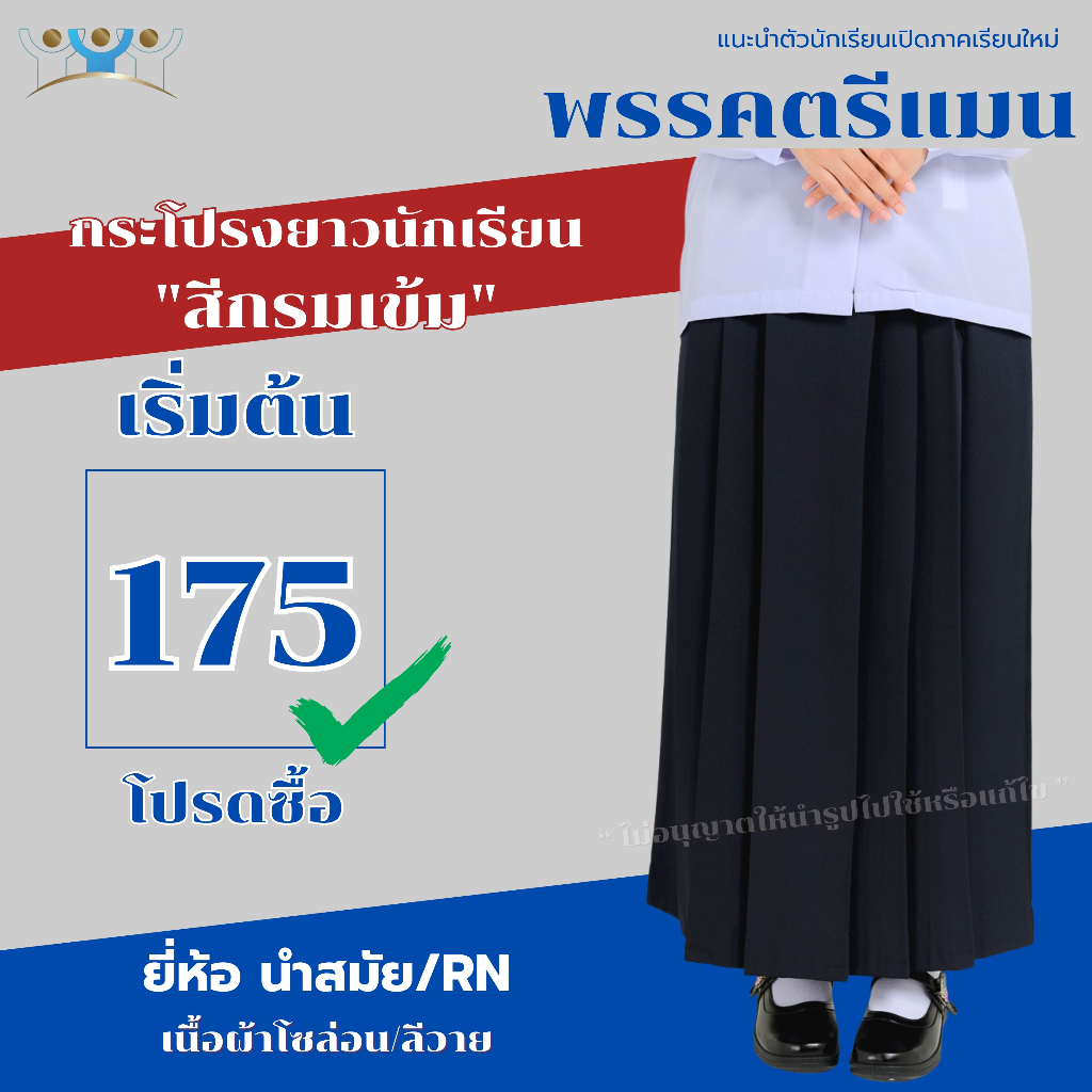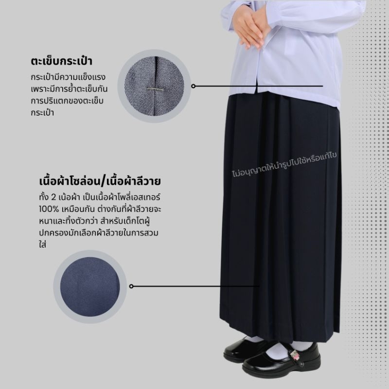 กระโปรงนักเรียนมุสลิม สีกรม ผ้าโซล่อน ผ้าลีวาย ชุดนักเรียนมุสลิมยี่ห้อ นำสมัย RN