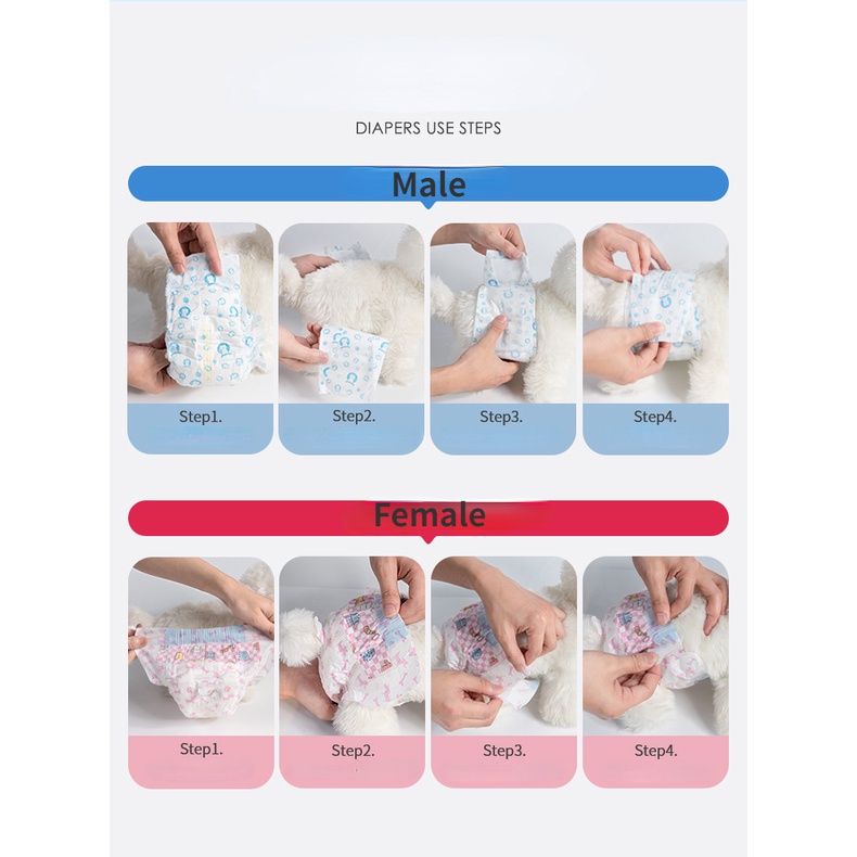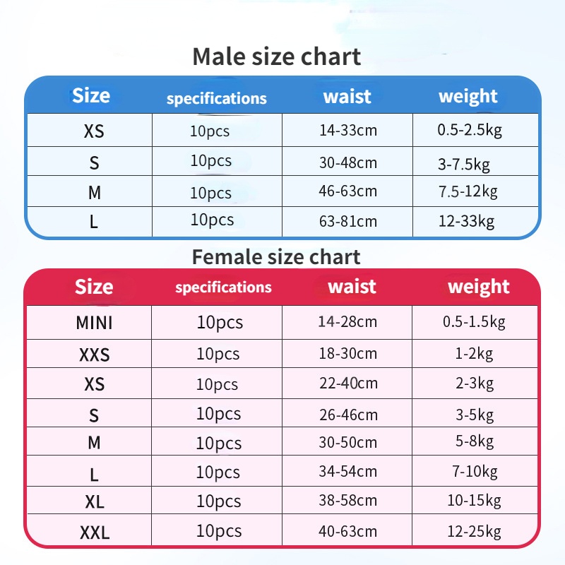 ผ้าอ้อมสัตว์เลี้ยง XXS-XL ผ้าอ้อมสำหรับสุนัขผู้หญิง / ผู้ชายคุณภาพสูง 24 ชิ้น