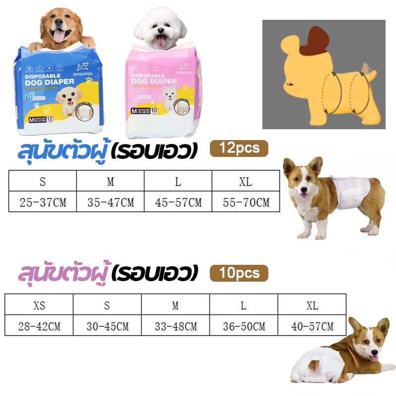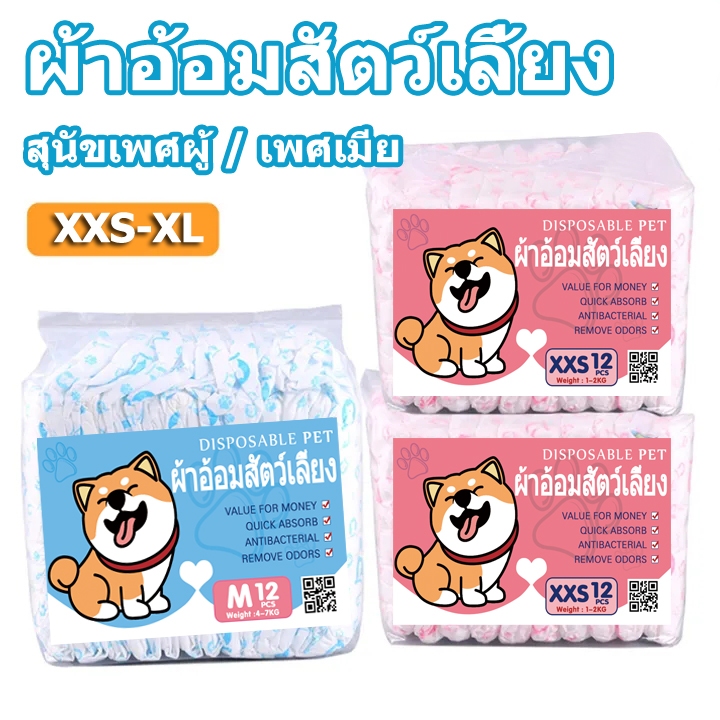 ผ้าอ้อมสุนัข เพศผู้ ผ้าอ้อมหมา แพมเพิส ผ้าอ้อมสัตว์เลี้ยง สุนัข 12 ชิ้น/แพ็ค