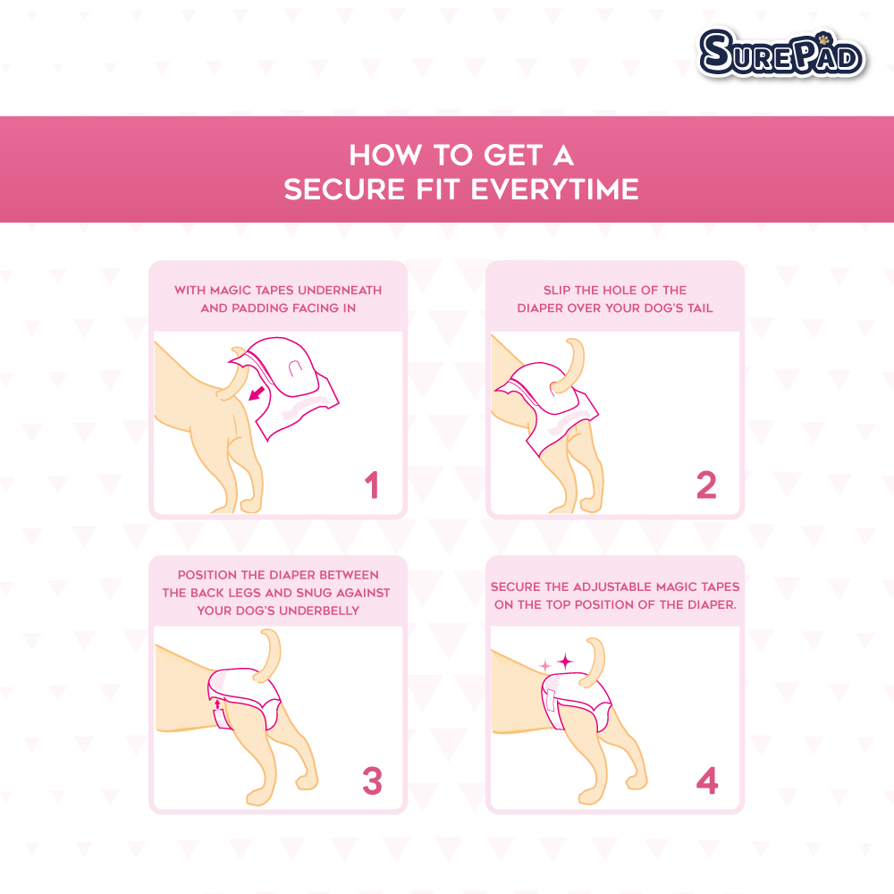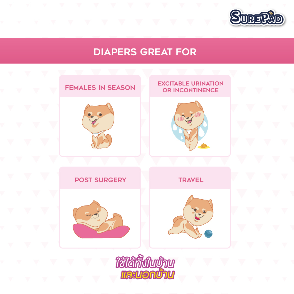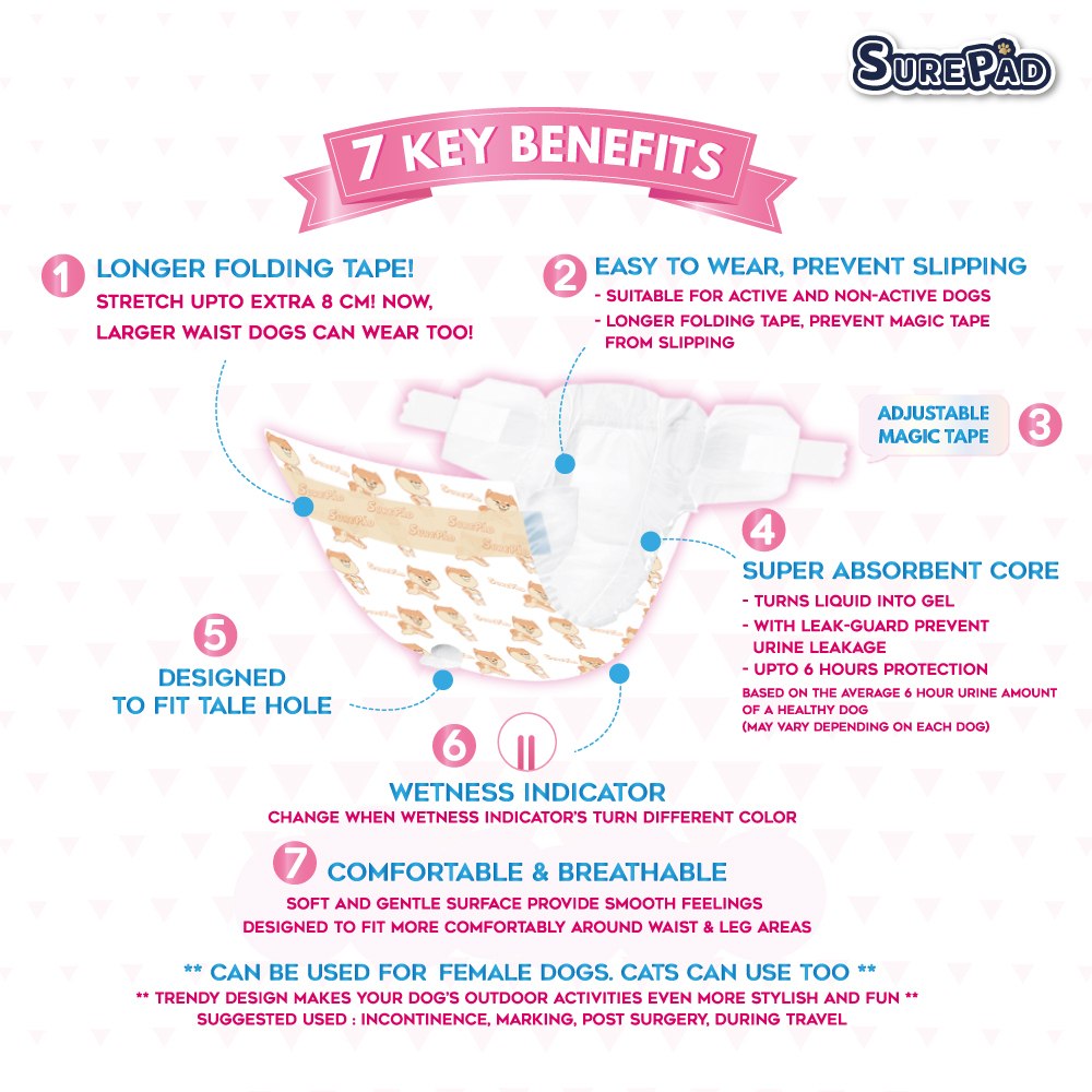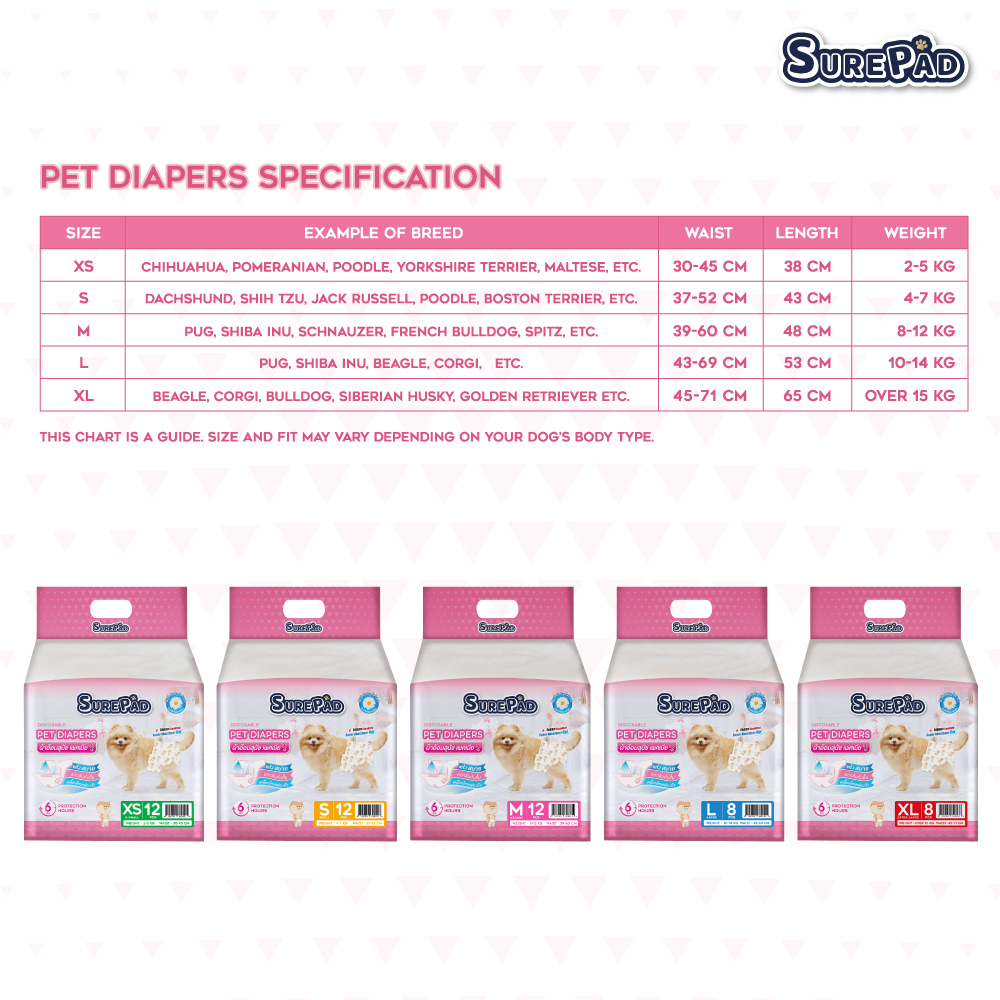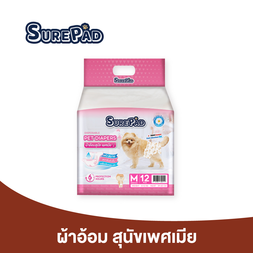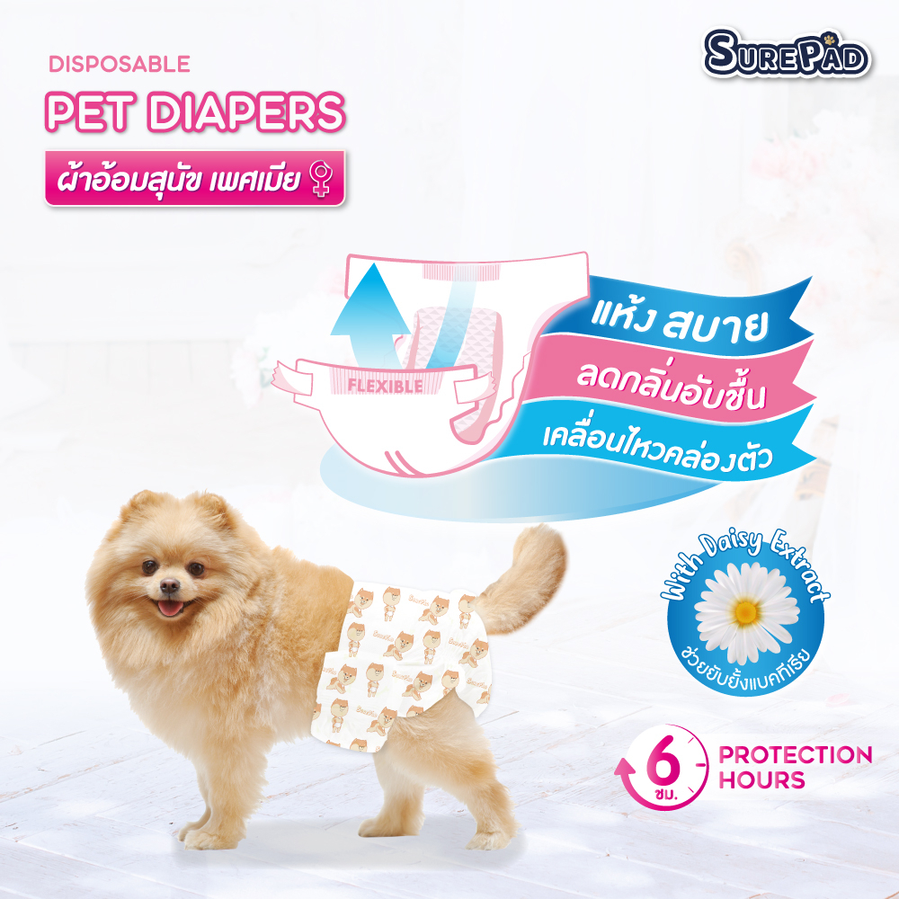 SurePad Pet Diapers ผ้าอ้อมสุนัข ฝึกขับถ่าย สำหรับสุนัขเพศเมีย ใส่สบายสวมง่ายทุกสายพันธุ์ มี 5 ไซส์