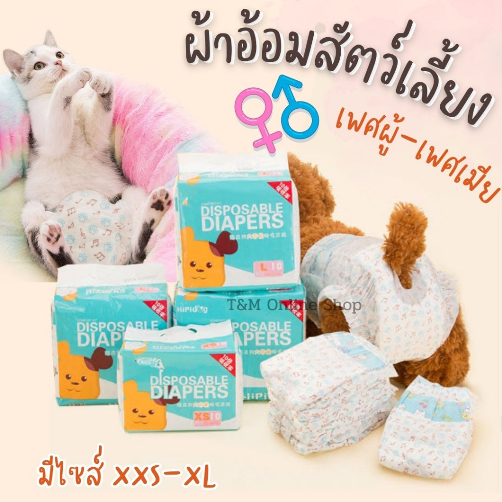 ผ้าอ้อมสุนัข ตัวเมีย-ตัวผู้ -แมว ผ้าอ้อมสัตว์เลี้ยง 1ห่อ/10 ชิ้น โอบิ Dog Diaper แพมเพิสสุนัข