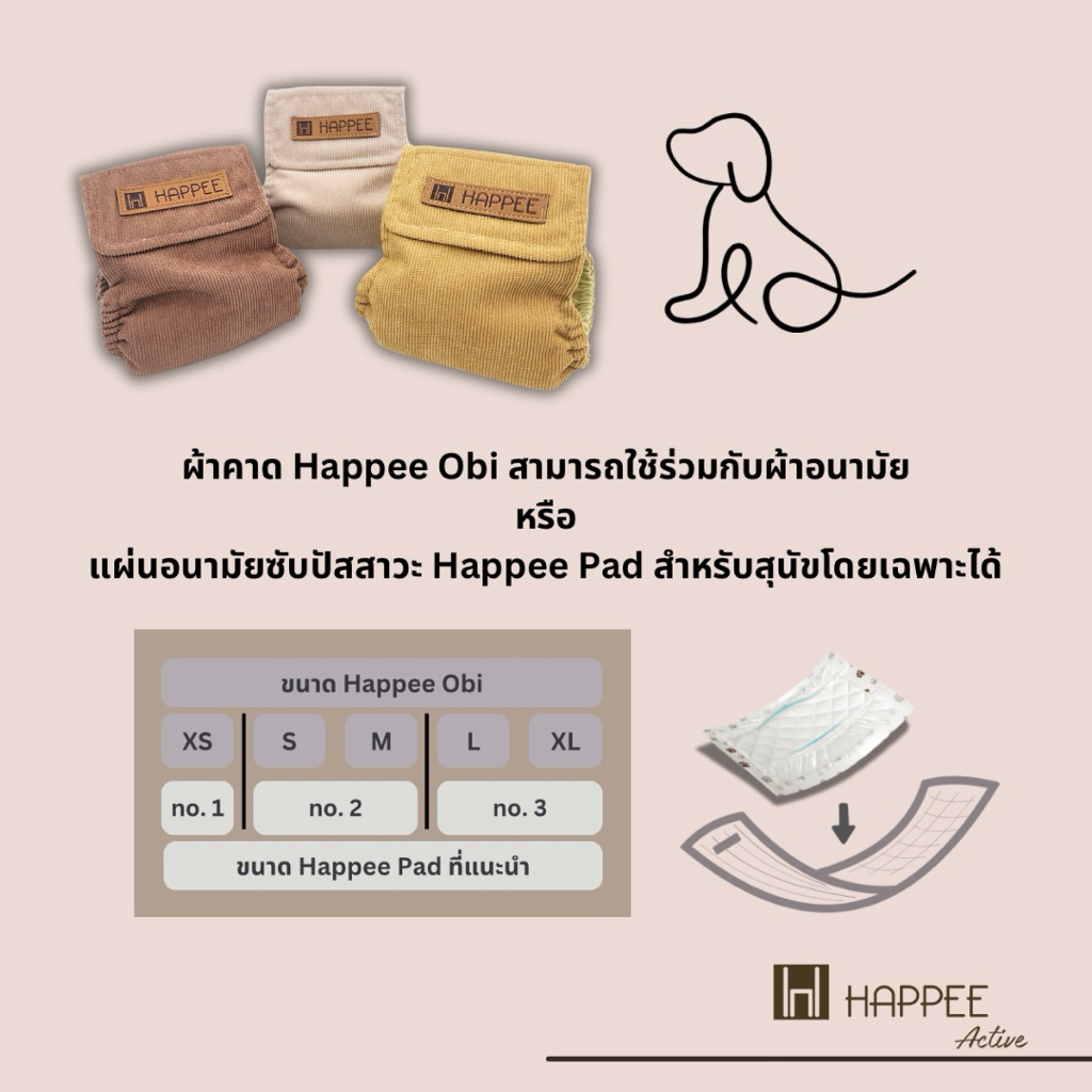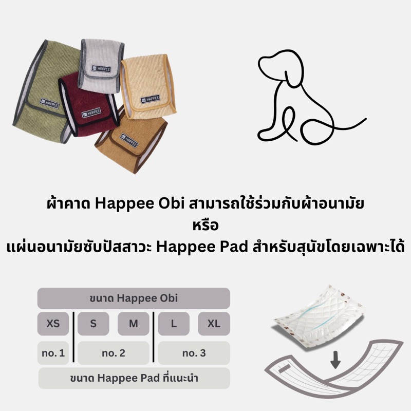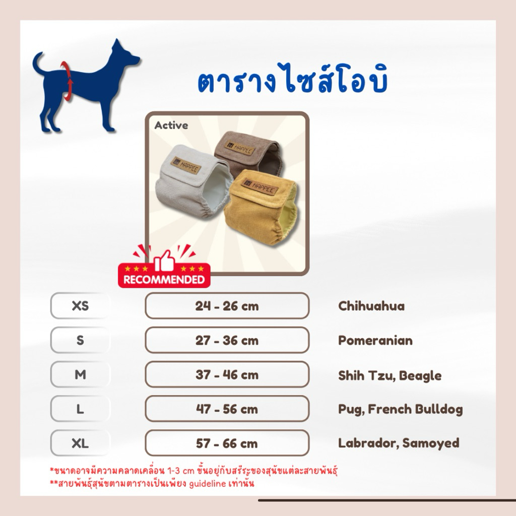 Happee Obi โอบิสุนัข รุ่น Active แบบซักได้สำหรับสุนัขเพศผู้ ผ้าคาดเอวสุนัข ผ้าอ้อมสุนัข