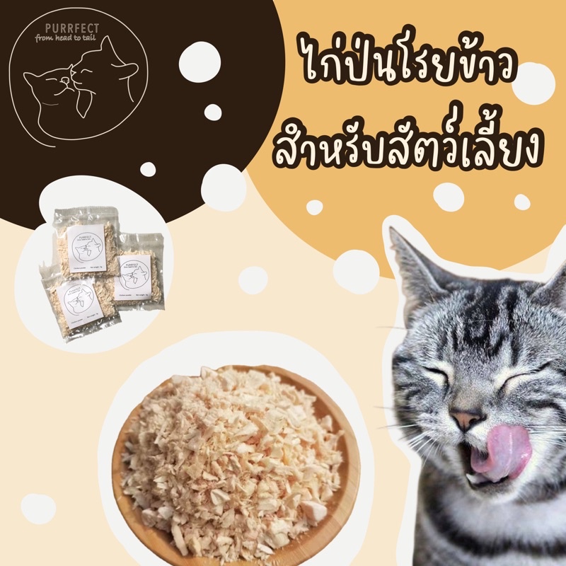 Purrfect ไก่ป่นโรยข้าว สำหรับสัตว์เลี้ยง 🐔 เนื้อไก่แท้ 100% ไม่ปรุงรส เสริมโปรตีน ขนาดพกพา