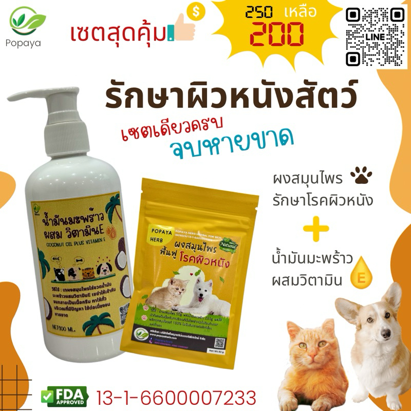 สมุนไพรผิวหนัง50g.+น้ำมันมะพร้าว200ml.น้องหมา น้องเเมวเลขจดแจ้ง: 13-1-6600007233