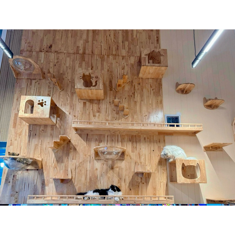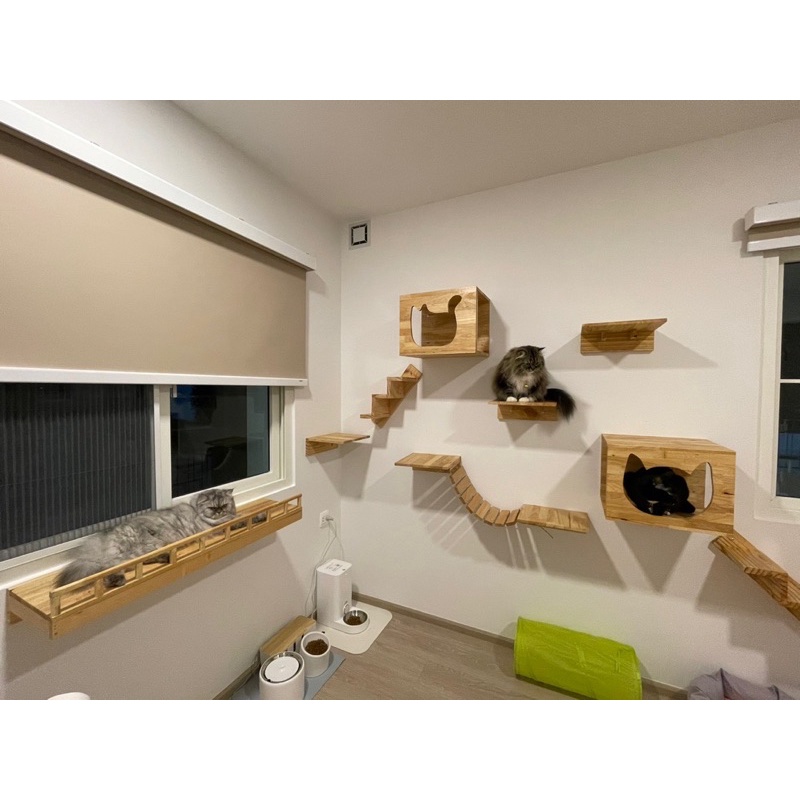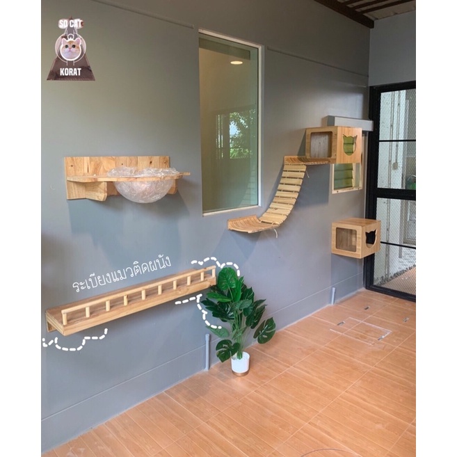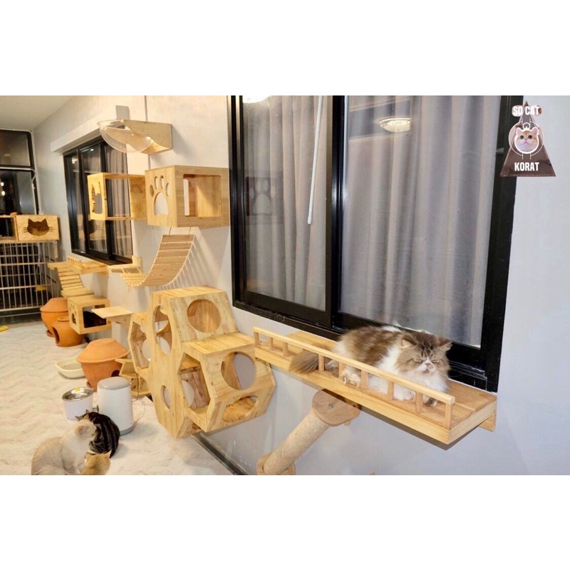“พร้อมส่ง”ระเบียงไม้ชมวิวน้องแมวยาว 120cm 150cm/ติดผนังไม้ยางพาราอัดประสานแข็งแรงทนทาน