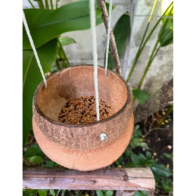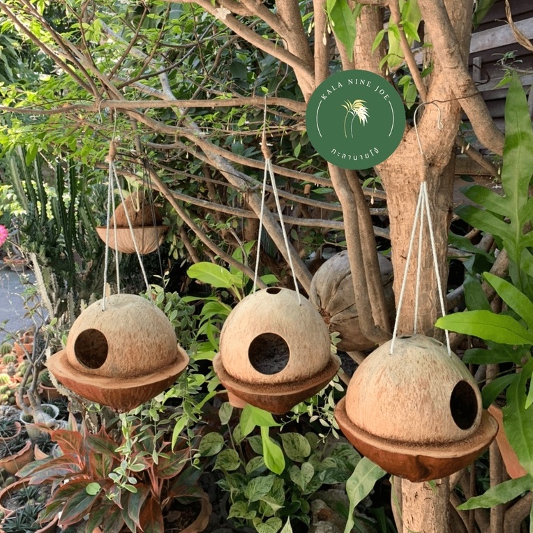 (พร้อมส่ง) 🪹🍂 กะลาแขวน สำหรับแต่งบ้านแต่งสวน_ใส่น้ำ/อาหาร สัตว์เลี้ยง นก หนู ซูการ์ กระรอก | กะลานายโจ้