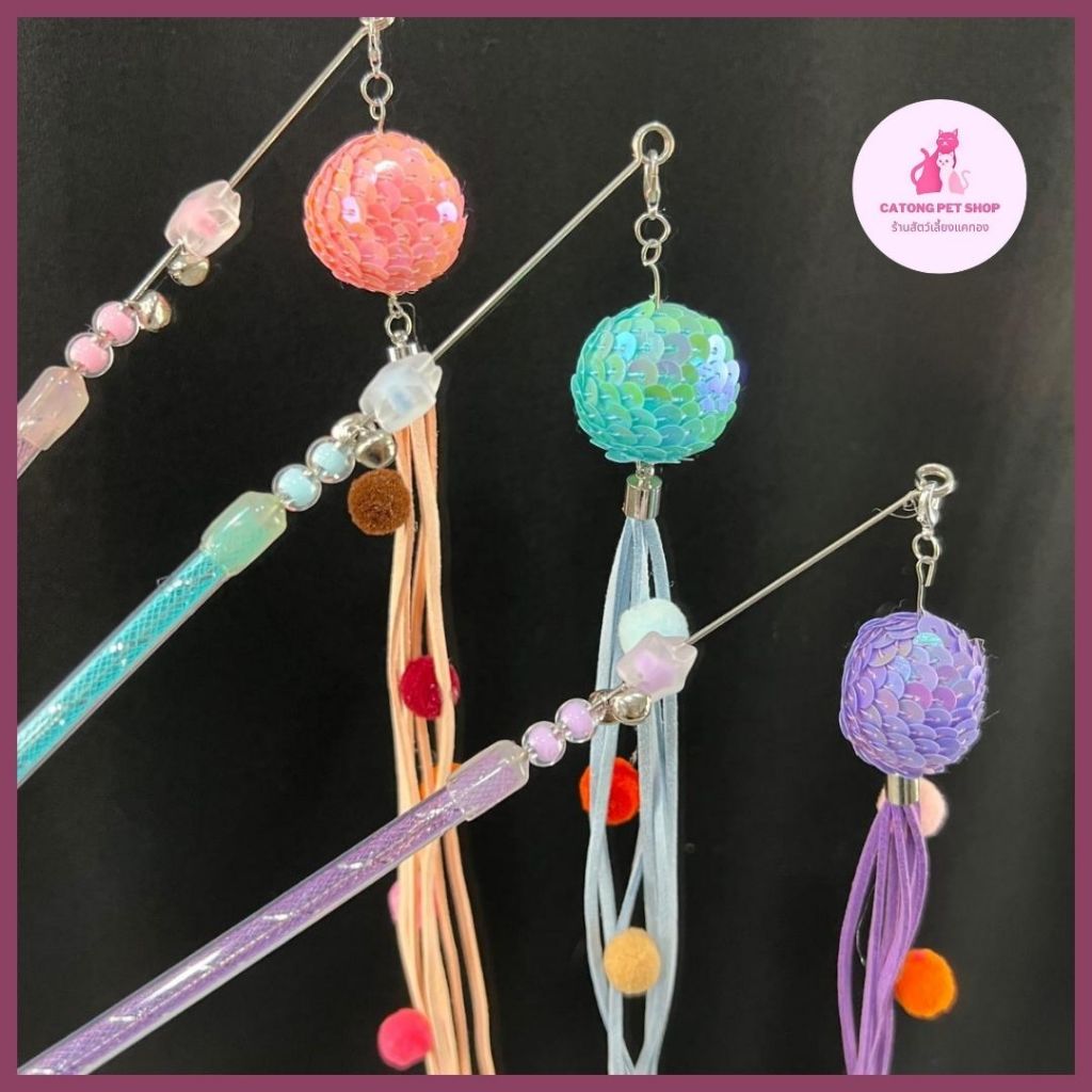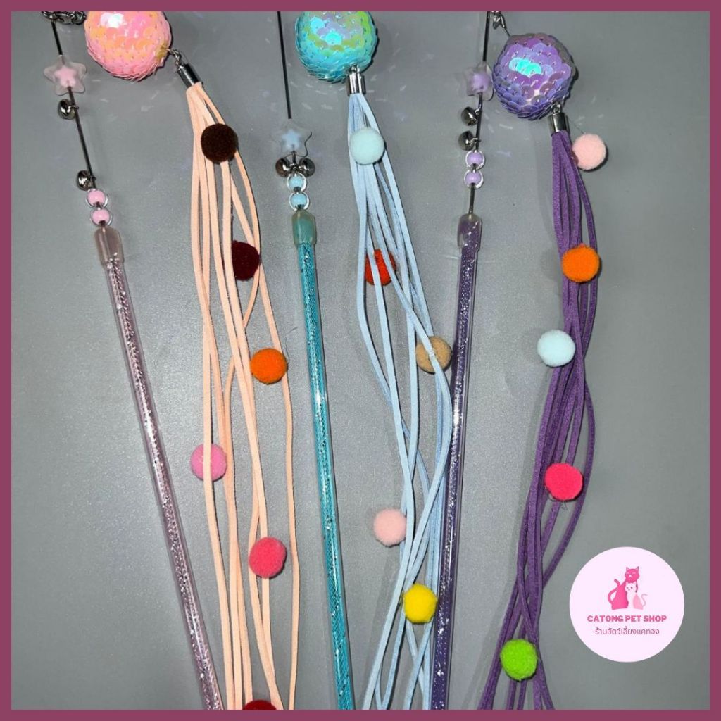 “ไม้ตกแมว ไม้ล่อแมว รุ่นปอมปอม มีกระดิ่ง ไม้แมว ของเล่นแมว พู่แมว ของเล่นฝึกแมว ของเล่นฝึกแมว