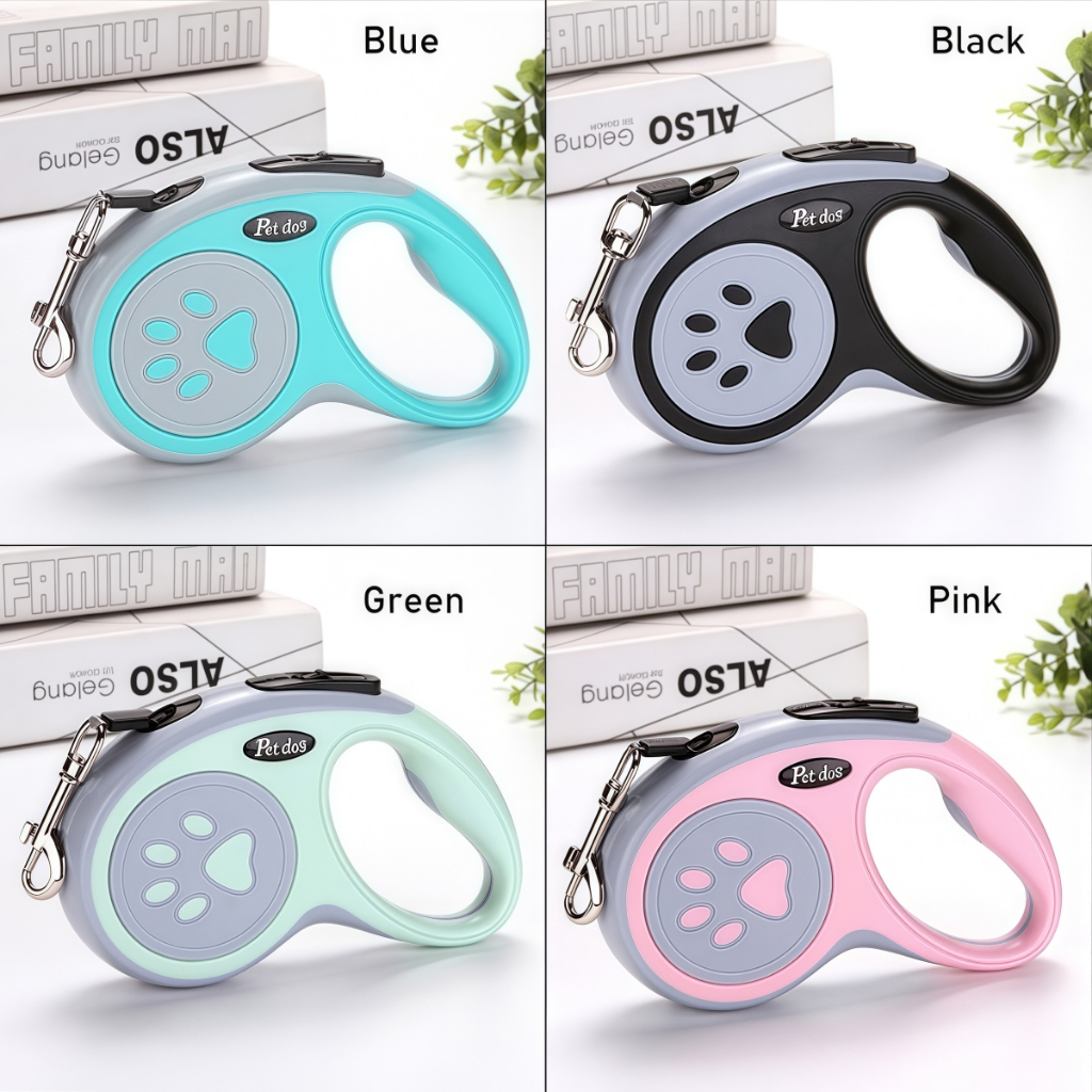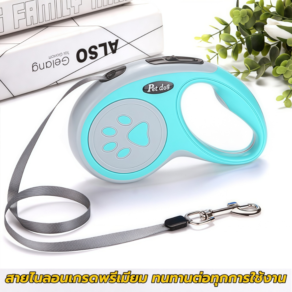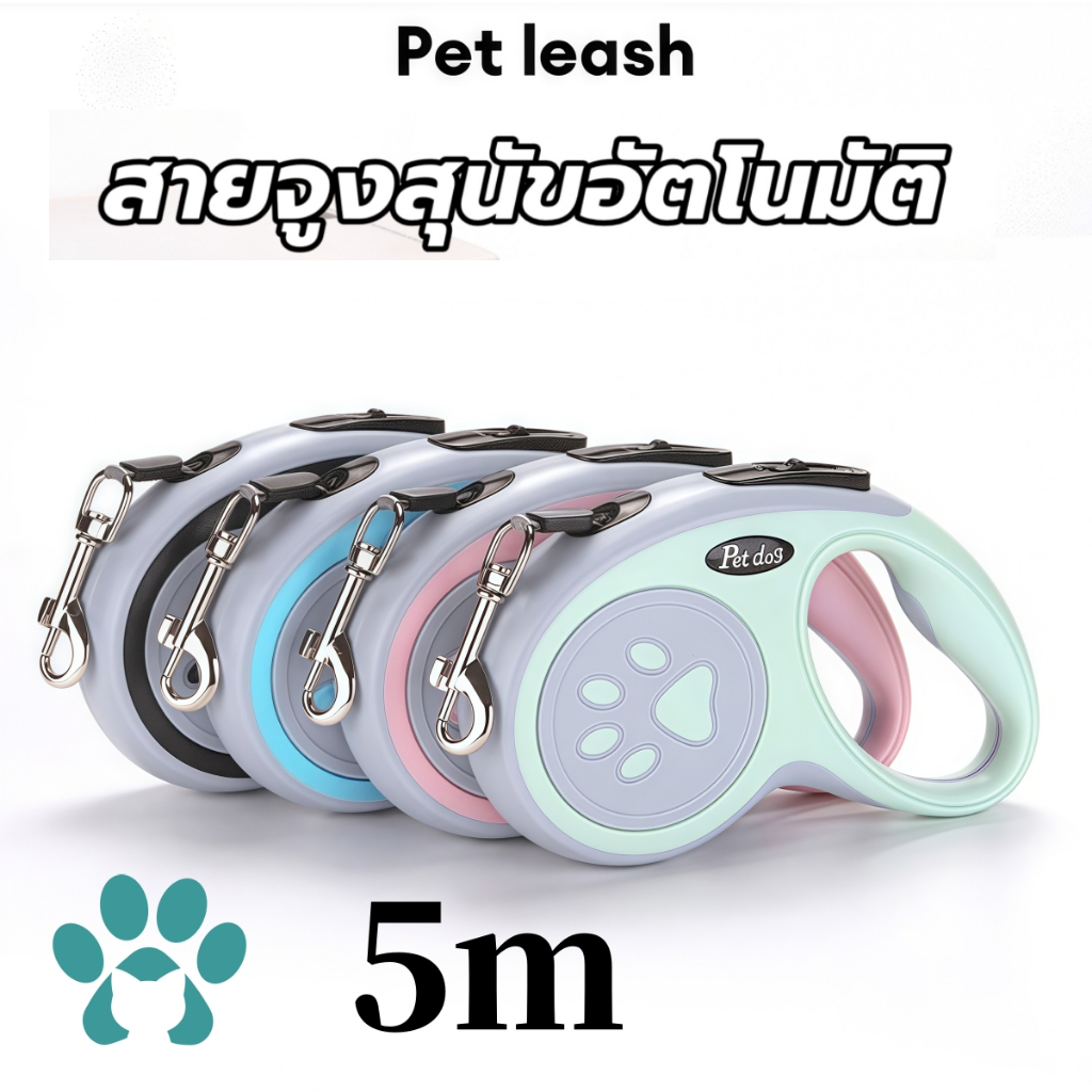 (5m)สายจูงสุนัขอัตโนมัติ 5 เมตร ปรับยาวอัตโนมัติ! กดปุ่มล็อกทันที ไม่สะดุด สายไนลอนแข็งแรง พกพาสะดวก สำหรับสัตว์เลี้ยงขน