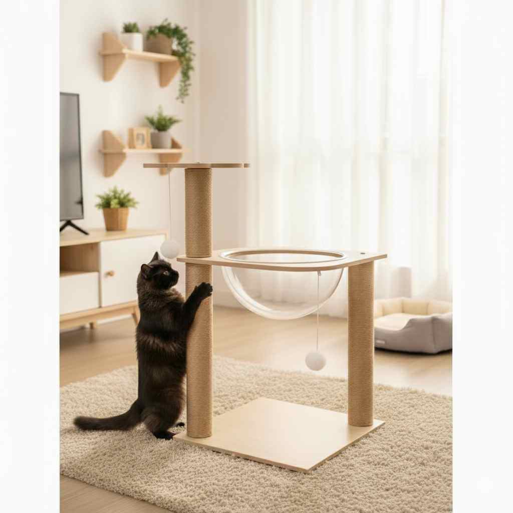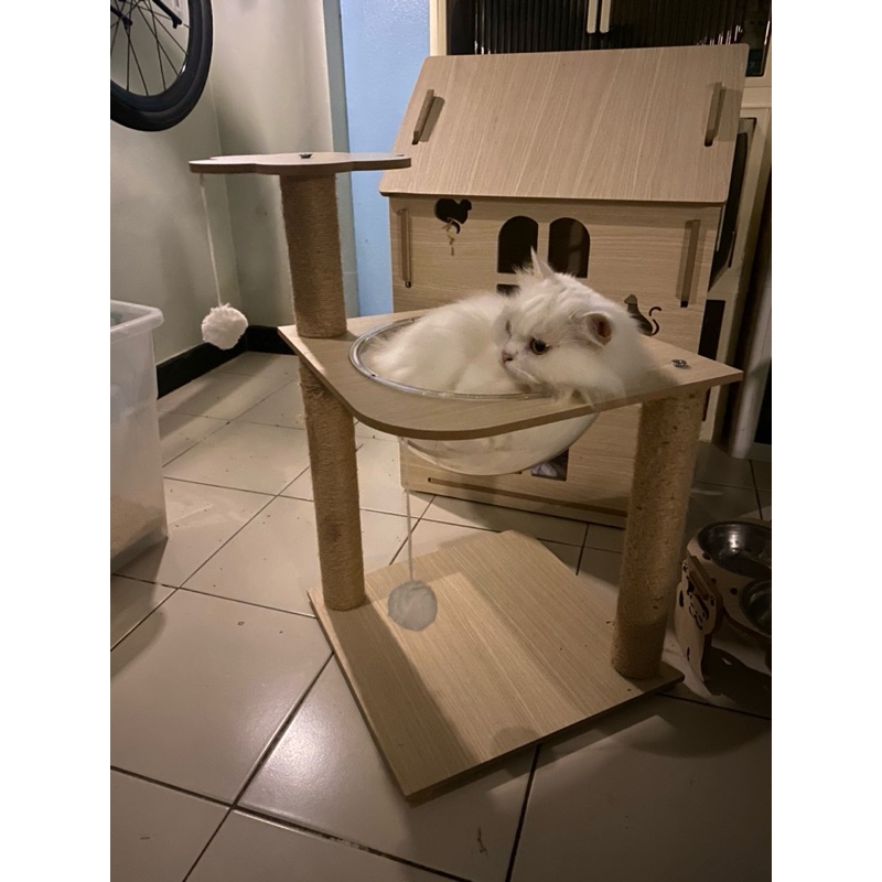 ( CONDO-59CM )คอนโดแมว3ชั้น มีอ่างใส ที่นอนแมว บ้านน้องแมว เฟอร์นิเจอร์แมว เสาลับเล็บแมว ที่ข่วนเล็บ