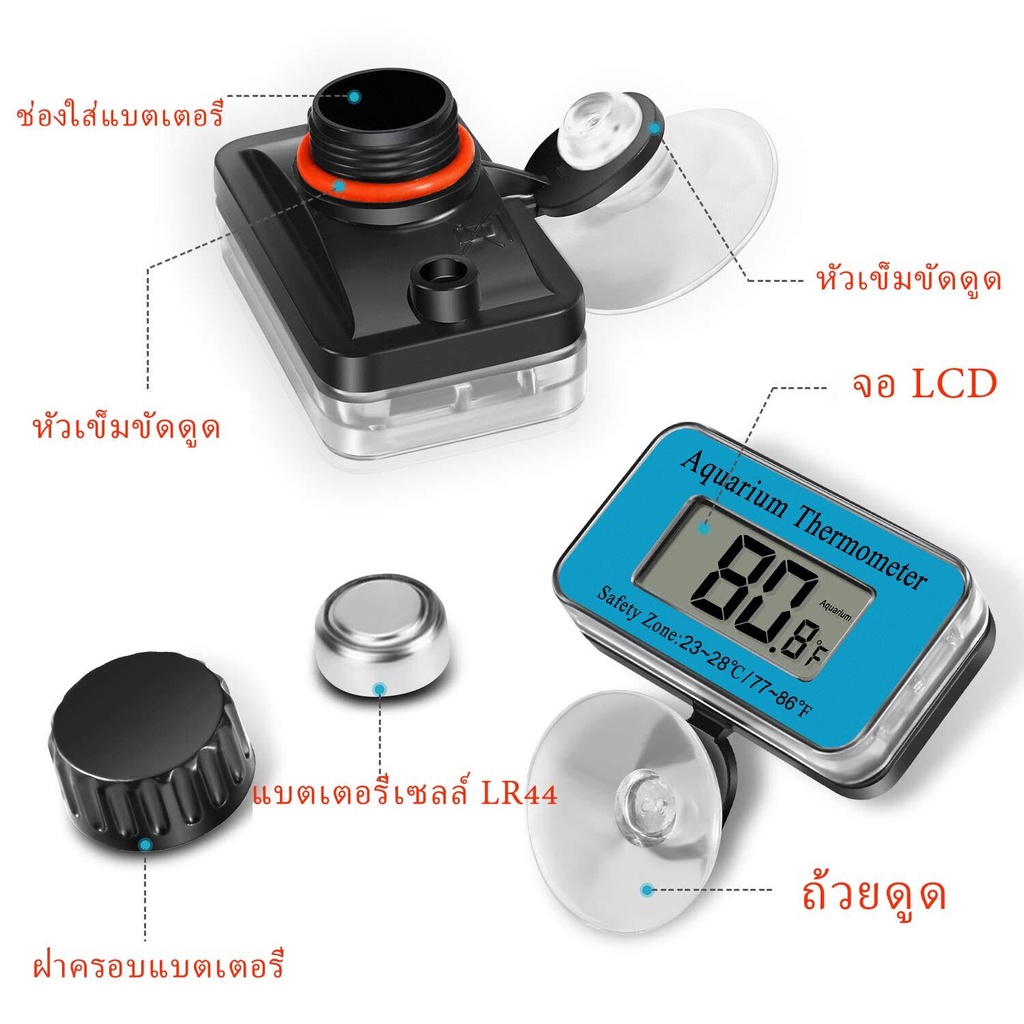All About Pet ที่วัดอุณหภูมิตู้ปลา LCD เครื่องวัดอุณหภูมิดิจิตอล วัดอุณหภูมิ พร้อมถ้วยดูด