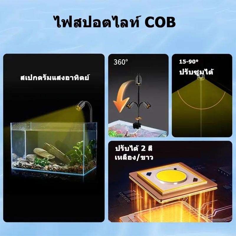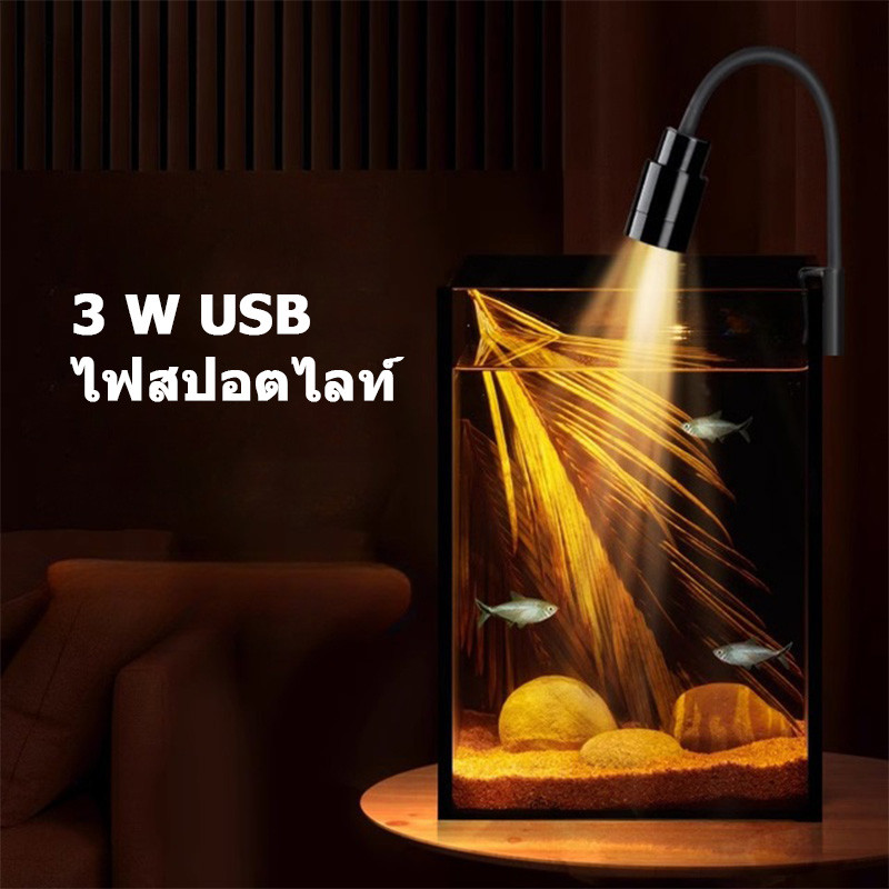 3 สี โคมไฟตู้ปลา LED ไฟเลี้ยงตู้ปลา ซูมได้ กันน้ํา สําหรับตกแต่งตู้ปลา การหมุน 360° การหรี่แสง 3W USB