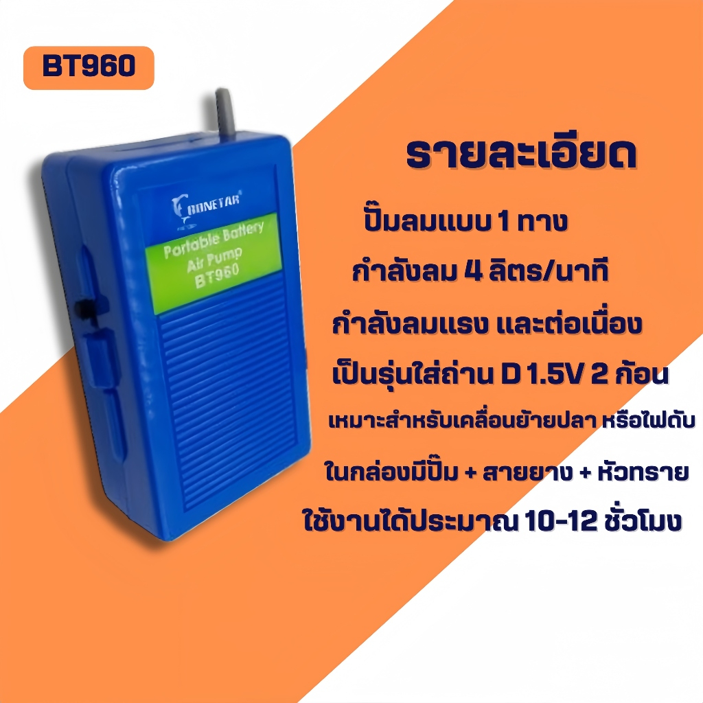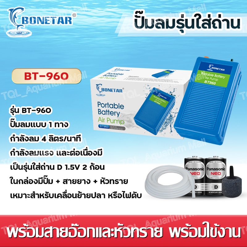Bonetar ปั๊มลม BT960 ปั๊มลมรุ่นใส่ถ่าน Air pump ปั๊มลมรุ่นพกพา มาพร้อมสายยางและหัวทราย ใช้งานได้ประมาณ 10-12 ชั่วโมง