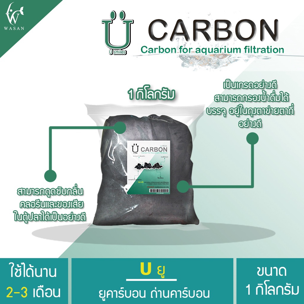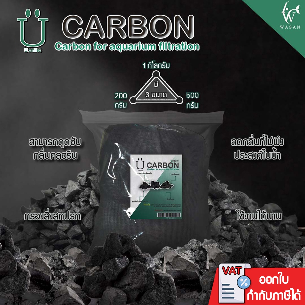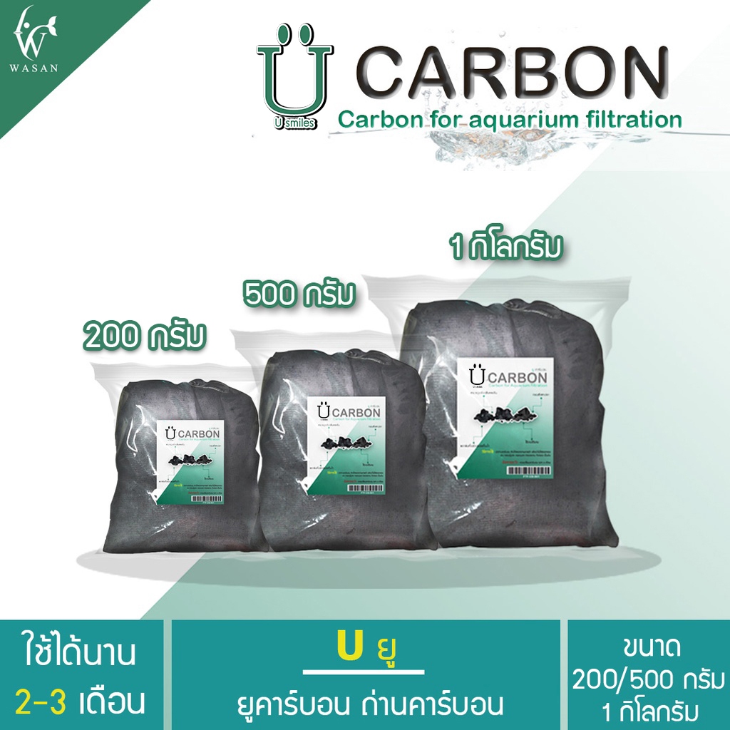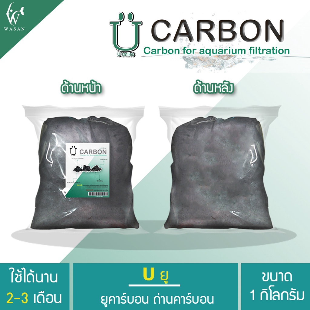 Carbon ยูคาร์บอน ถ่านคาร์บอน วัสดุกรองน้ำตู้ปลาคุณภาพสูง 1 กิโลกรัม พร้อมตาข่ายอย่างดี