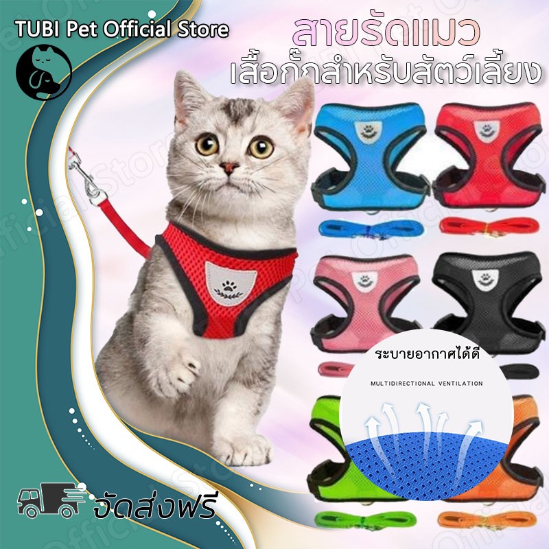 TUBI สายรัดแมว 1 ชุดสัตว์เลี้ยงเชือกจูงเสื้อกั๊กหน้าอกสายคล้องคอปรับได้ง่ายควบคุม