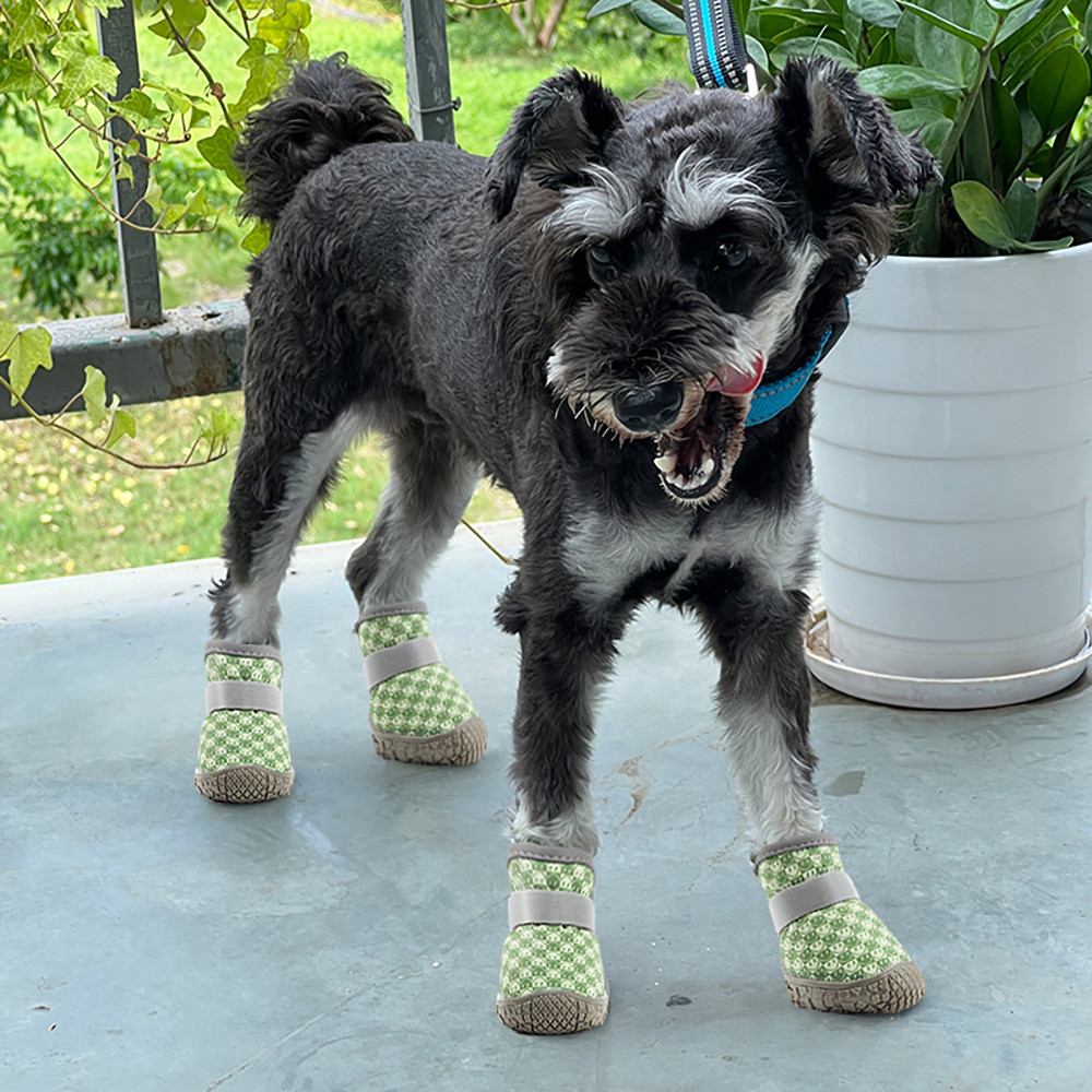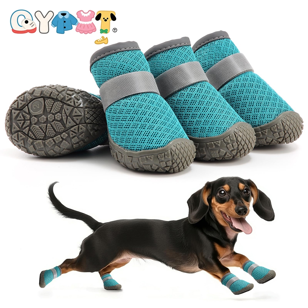QYPET 4 ชิ้น/ล็อต Breathable สัตว์เลี้ยงรองเท้าแมวสุนัข Anti-Slip สบายยาง Soles รองเท้าลูกสุนัขกลางแจ้ง Play Paw Protectors อุปกรณ์สัตว์เลี้ยง