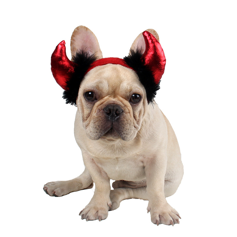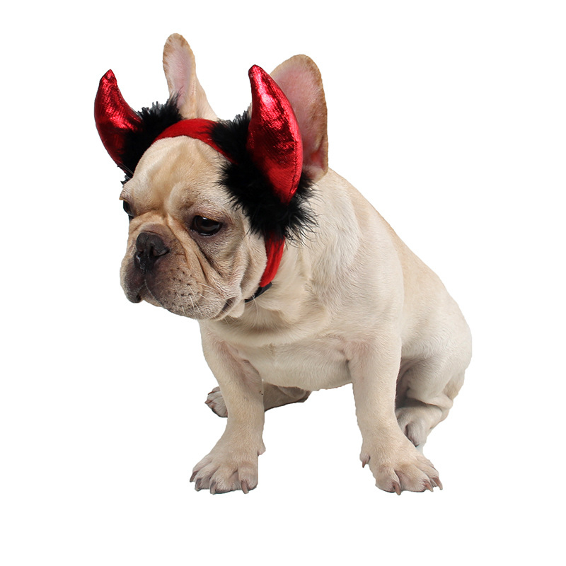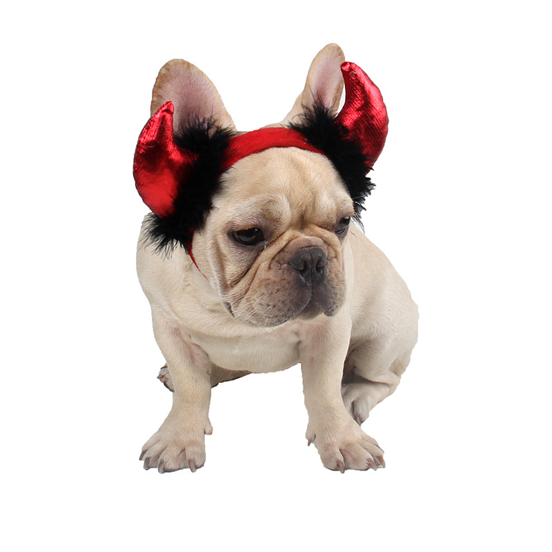 น่ารัก Red Devil Horns สัตว์เลี้ยง Headwear คอสเพลย์อุปกรณ์เสริมสําหรับ French Bulldogs แมวสุนัขพันธุ์เล็กฮาโลวีนงานปาร์ตี้