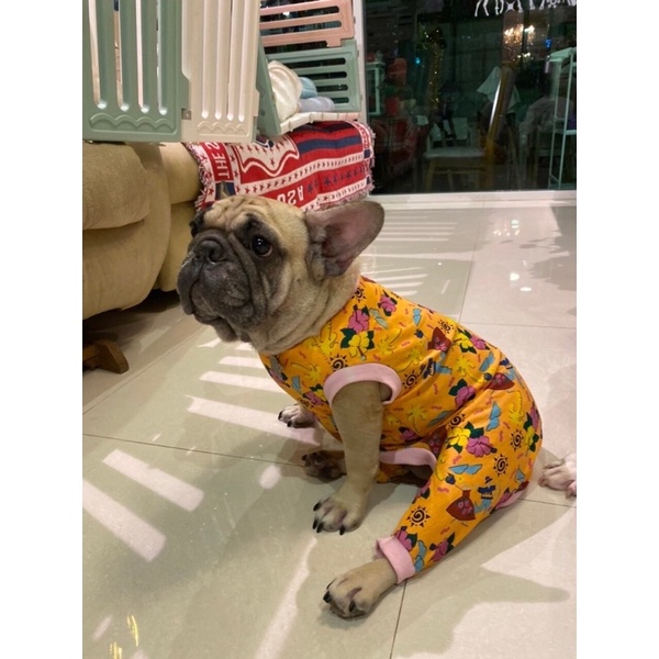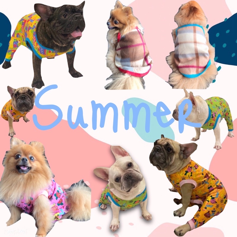 ชุดสัตว์เลี้ยง ชุดหมา เสื้อหมา ลายSummer 4สี ส้ม เขียว เหลือง ชมพู แบบมีขาหลัง / ทรงเสื้อกล้าม