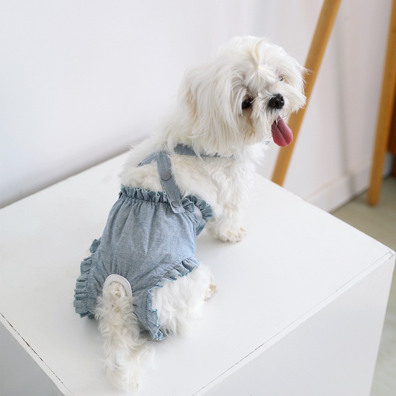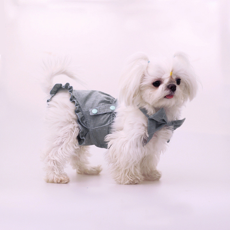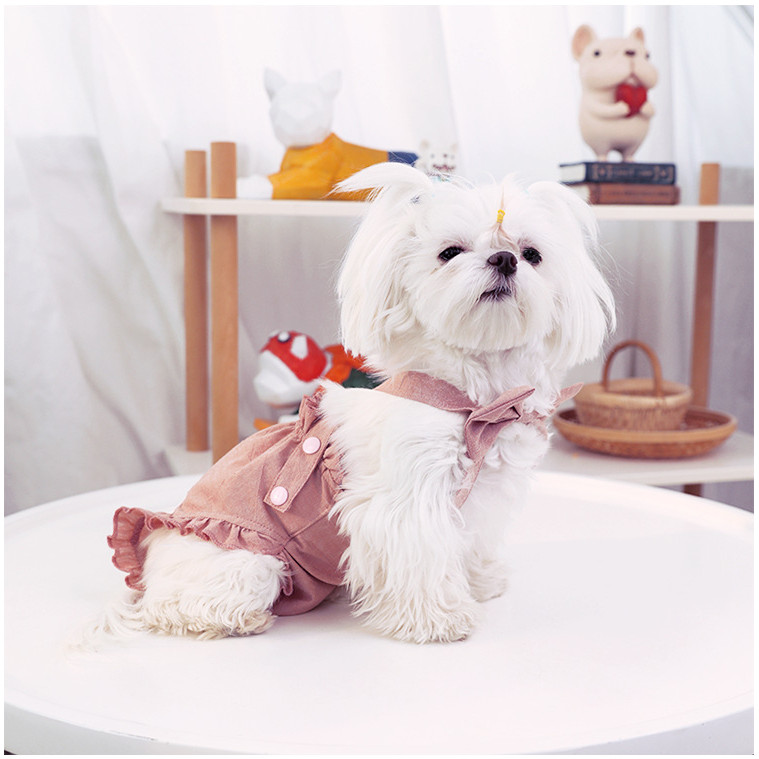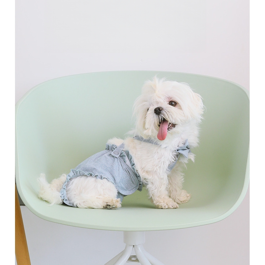 ชุดคู่สุนัขเท็ดดี้บิชอน กระโปรงยีนส์นุ่ม+เสื้อสายรัด สำหรับน้องหมาขนาดเล็ก ระบายอากาศดี หน้าร้อน