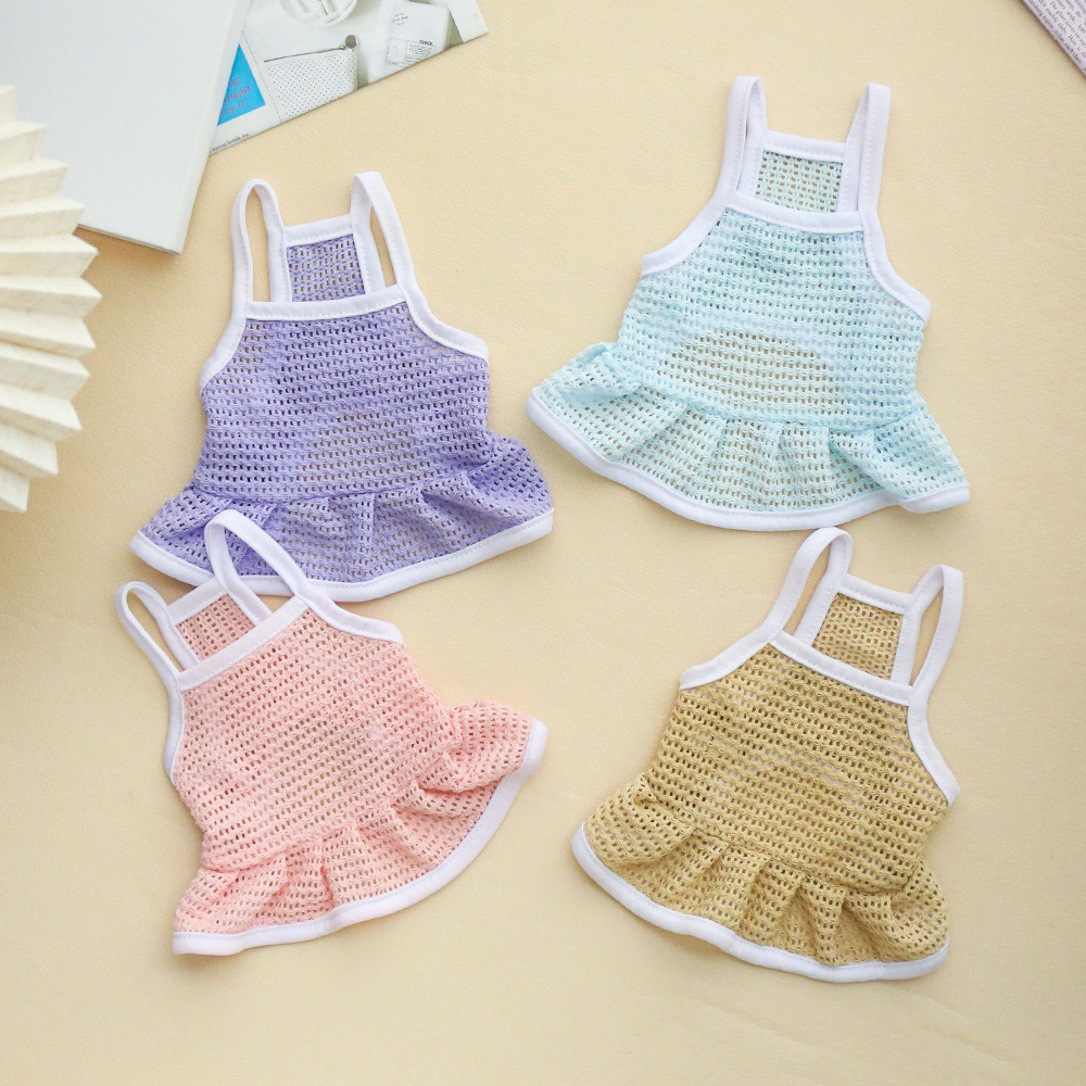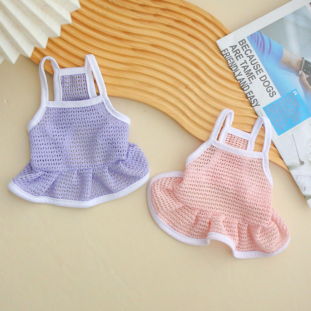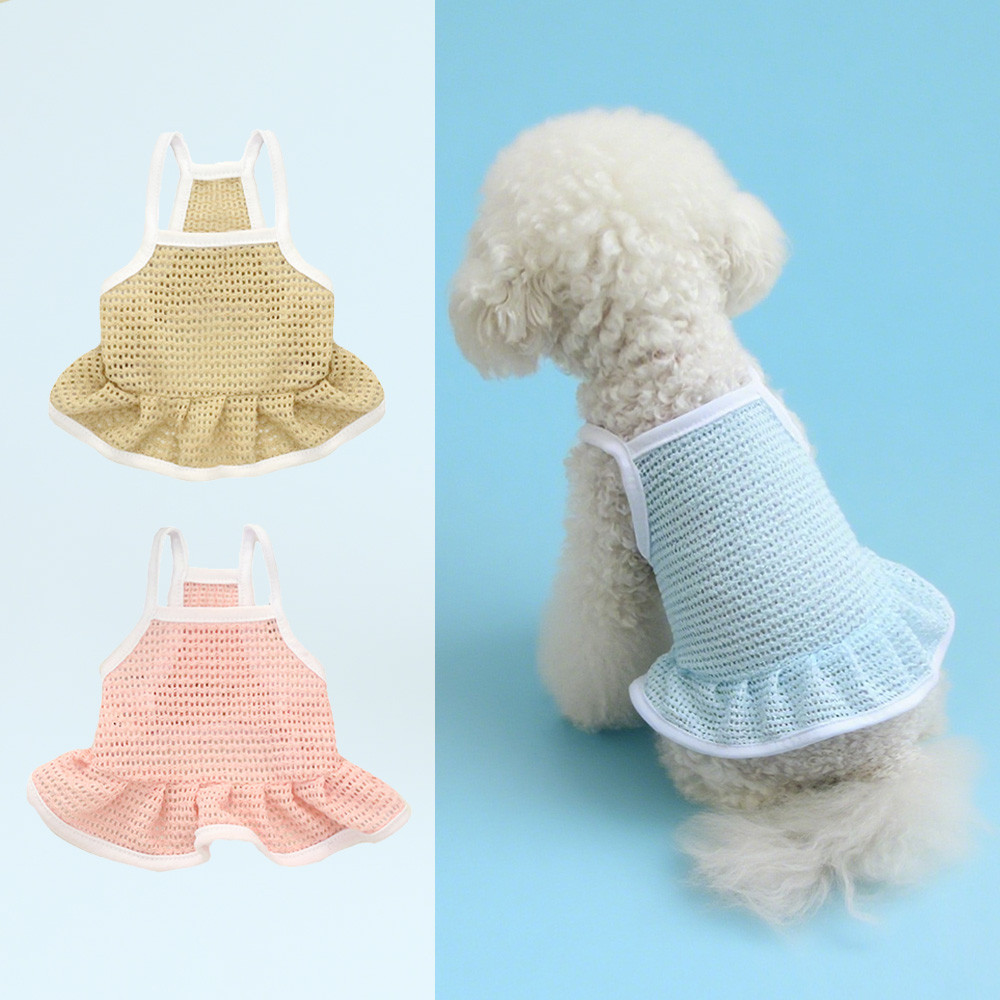 ชุดสัตว์เลี้ยงตาข่ายระบายอากาศเย็นกระโปรงสายรัดสีทึบกระโปรงแมวและสุนัขที่เรียบง่าย