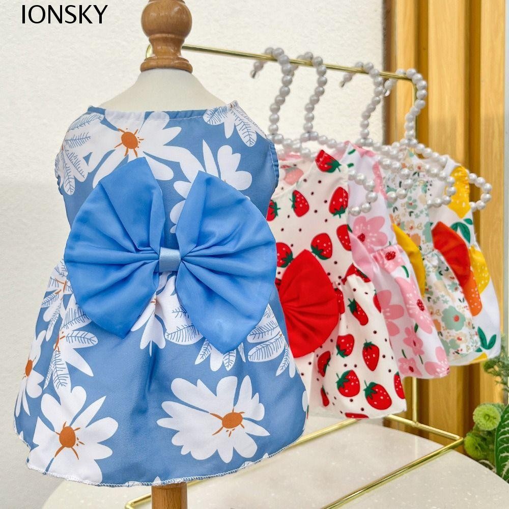 ชุดสุนัขแมว IONSKY, พิมพ์ลายดอกไม้น่ารักกระโปรงเจ้าหญิงลูกสุนัข, กระโปรงผีเสื้อ Bowknot ระบายอากาศได้ XS-XXL กระโปรงสัตว์เลี้ยงลูกแมว