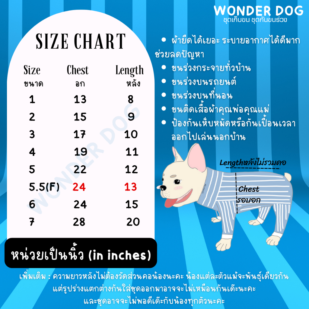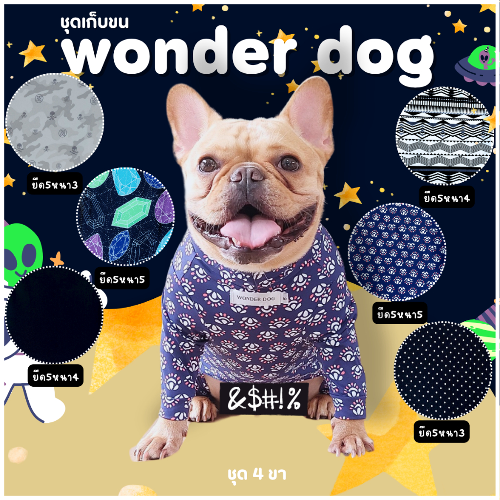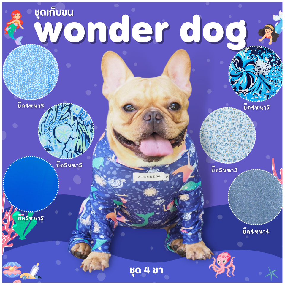 ชุดเก็บขน wonder dog เสื้อสุนัข เสื้อแมว ชุดกันขนร่วงสุนัข ชุดสัตว์เลี้ยง โทนน้ำเงิน