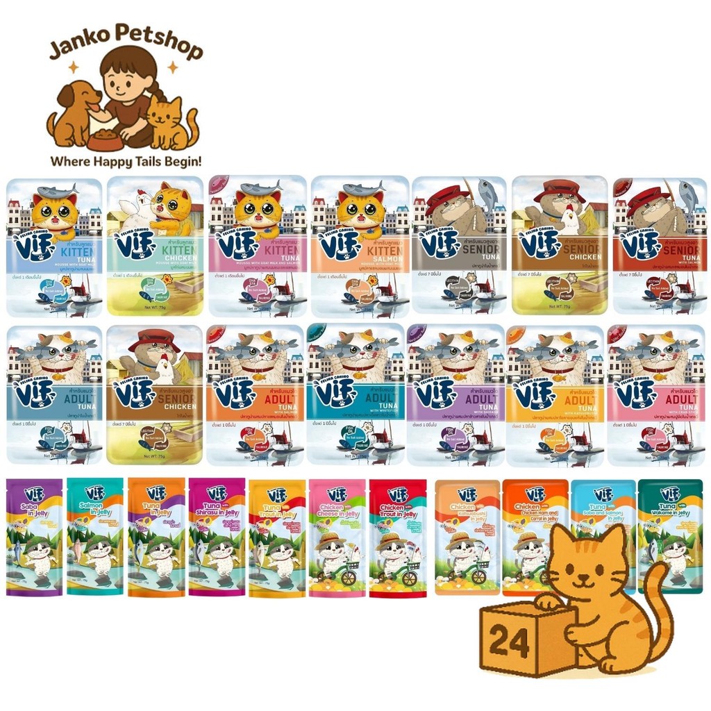 ( ครึ่งลัง 24 ซอง) VIF Felina Canino เฟลิน่า คานิโน่ เปียกแมววิฟ อาหารแมว ครบสูตร เปียกแมว เต็มคำสุด