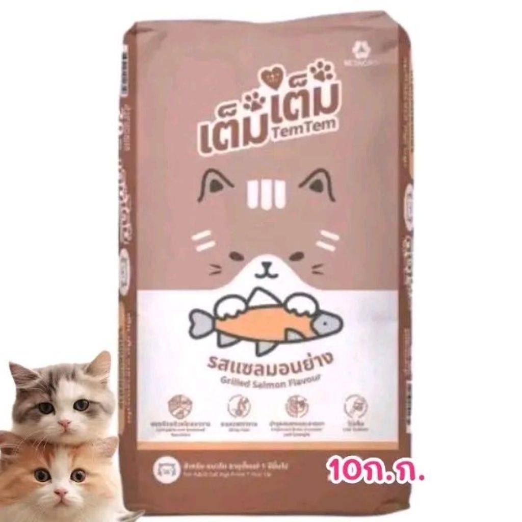 ( กระสอบ 10 ก.ก.) TEM TEM (เต็ม เต็ม) รสแซลมอนย่าง Cat Food อาหารเม็ดแมว แมว แมว สำหรับแมวโต 10ก.ก.
