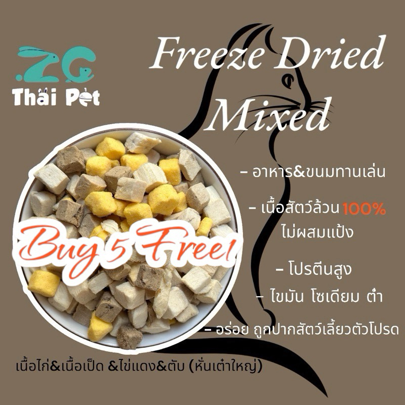 [ZC] เนื้อฟรีซดรายรวมมิตร 15 g. Freeze-dried Mixedขนม-อาหารสำหรับสัตว์เลี้ยงสุนัข,แมว,หนูแฮมเตอร์,กิ้งก่า