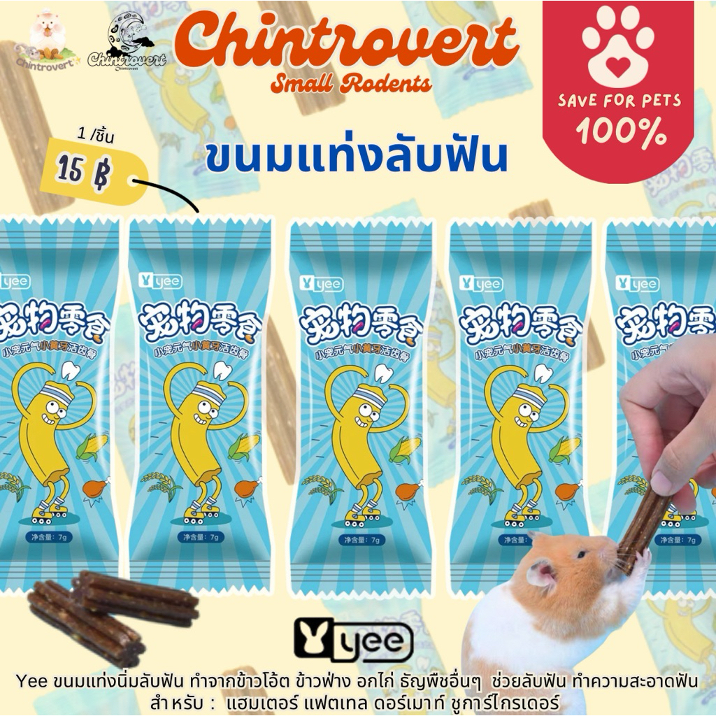 Chintrovert ⭐️| Yee ขนมแท่งลับฟัน 1 ชิ้น ช่วยบำรุงฟัน ลับฟัน | แฮมเตอร์ แฟตเทล ดอร์เมาท์ ชูการ์ไกรเดอร์ หนูดัมโบ้