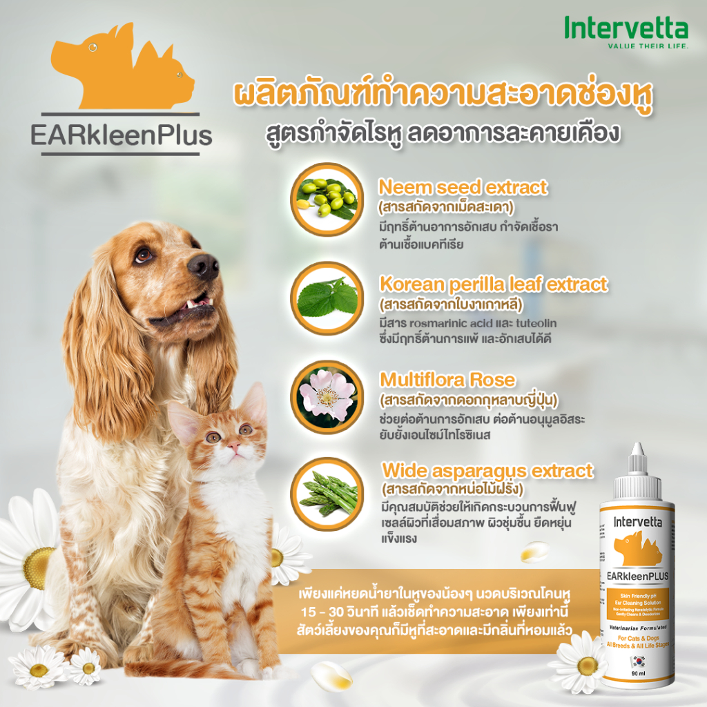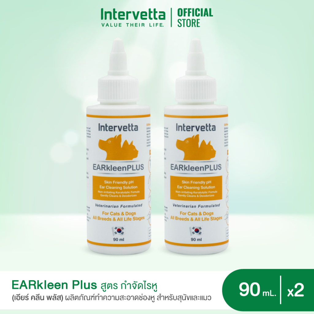 [แพ็คคู่] EARkleen Plus (เอียร์คลีน พลัส) สูตรกำจัดไรหู ผลิตภัณฑ์ทำความสะอาดช่องหูสำหรับสุนัขและแมว