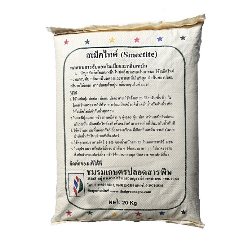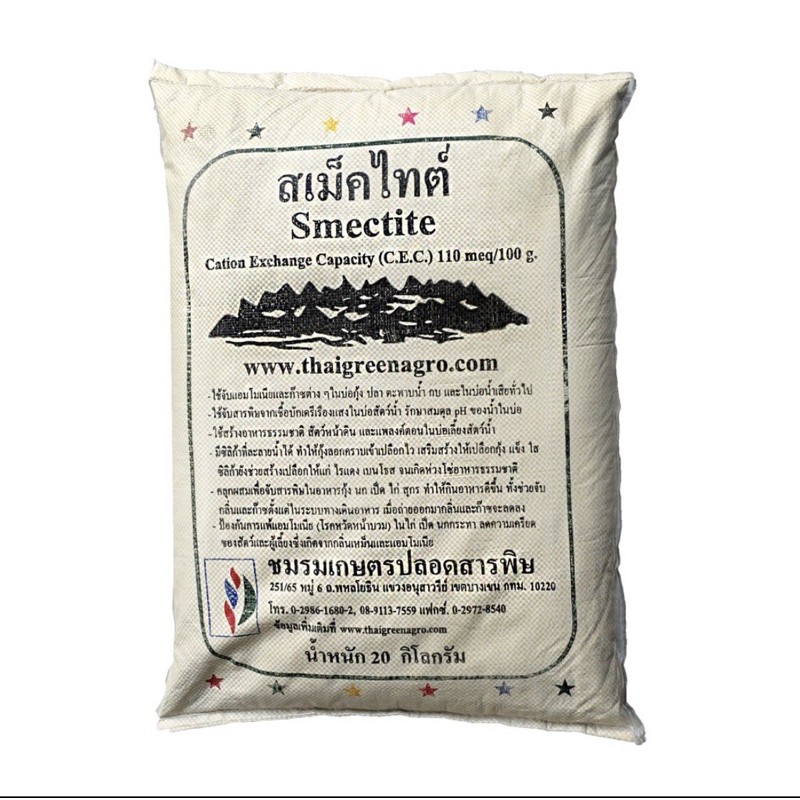 สเม็คไทต์ Smectite (ชนิดผง) ขนาดบรรจุ 20 กิโลกรัม ต่อกระสอบ หินแร่ภูเขาไฟ สามารถใช้ในการจับกลิ่นเหม็นในคอกสัตว์เลี้ยง
