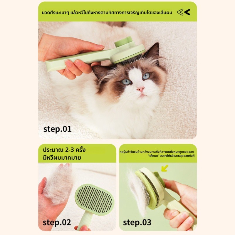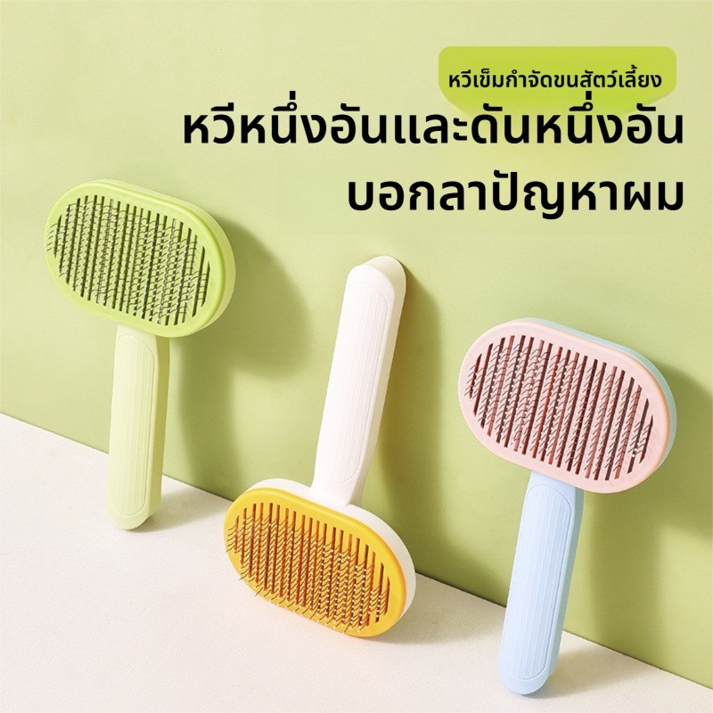 หวีกำจัดขน หวีสุนัข หวีแปรงขนสัตว์เลี้ยง ที่แปรงขนสุนัข แมว มีปุ่มกดเพื่อดันขนออก 😻ทำความสะอาดง่าย แปรงขนแมว