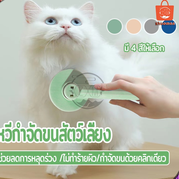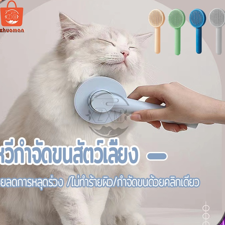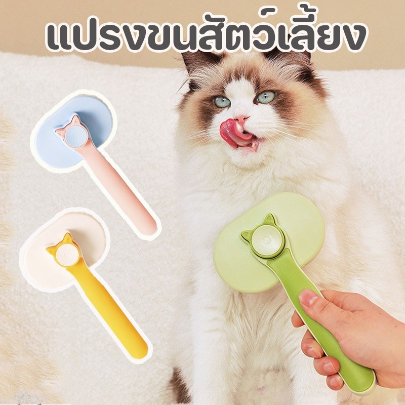 หวีกำจัดขน กรูมมิ่งสัตว์เลี้ยง ลอยแมวผม แปรงขนสัตว์เลี้ยง มีปุ่มกดเพื่อดันขนออก แมว ทำความสะอาดง่าย