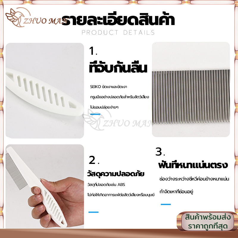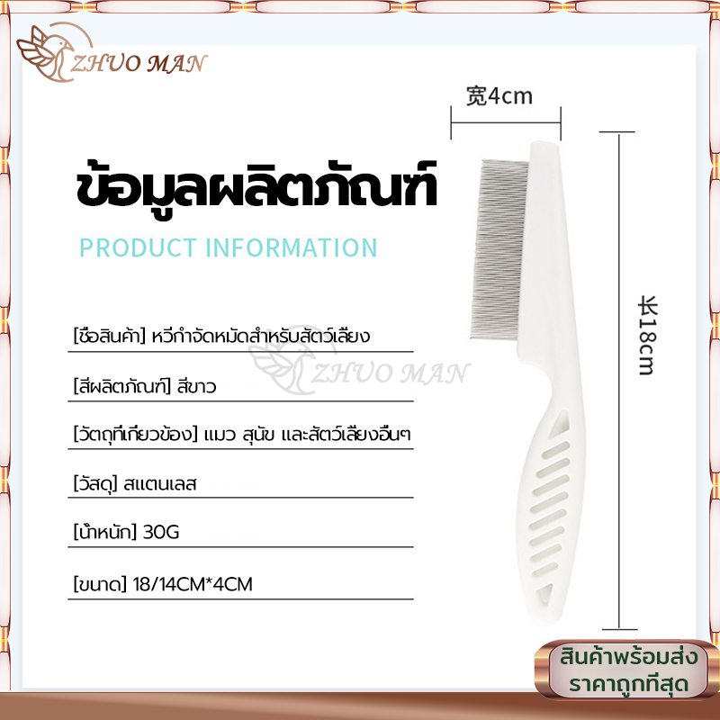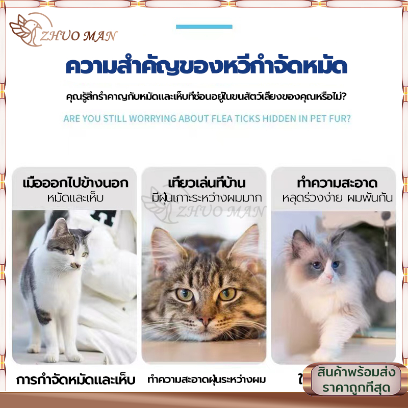 หวีสางเหา หวีหมัดแมว หวีแปรงขนสัตว์เลี้ยง ซี่หวีเข้ารหัสเหมาะสำหรับแมวและสุนัข ไม่คมไม่ทำร้ายผิว มี2ขนาด