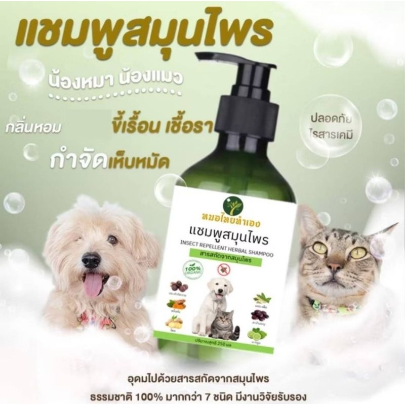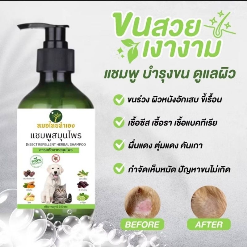 แชมพูป้องกันเห็บหมัด ดับกลิ่นสาบ Happy dog Shampoo สูตรสมุนไพร มี 6 กลิ่น