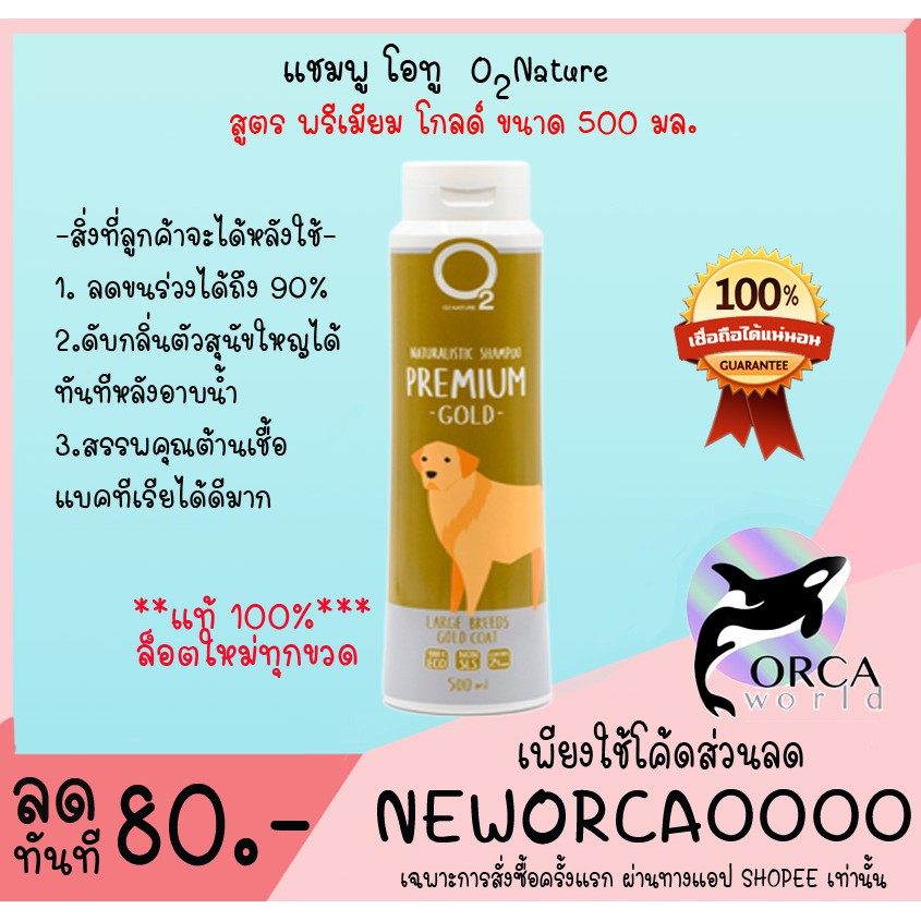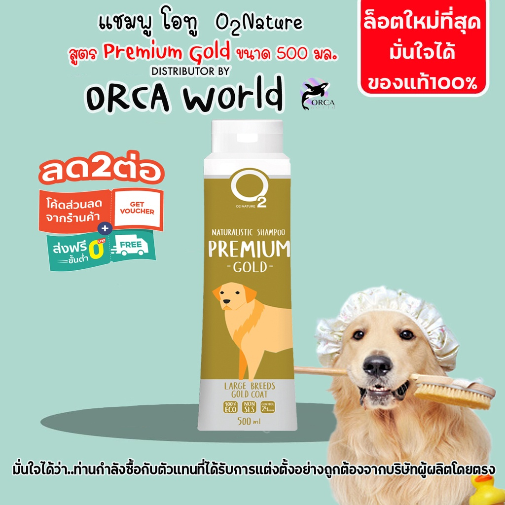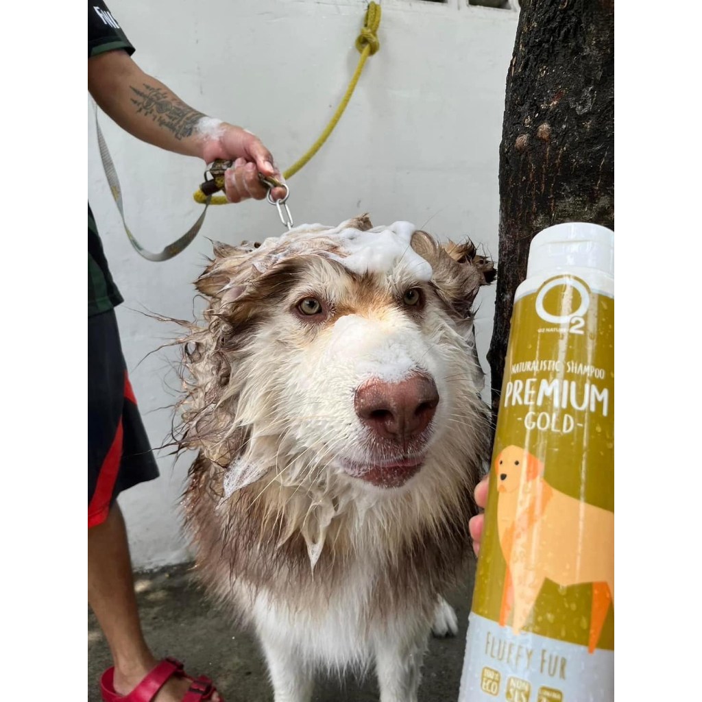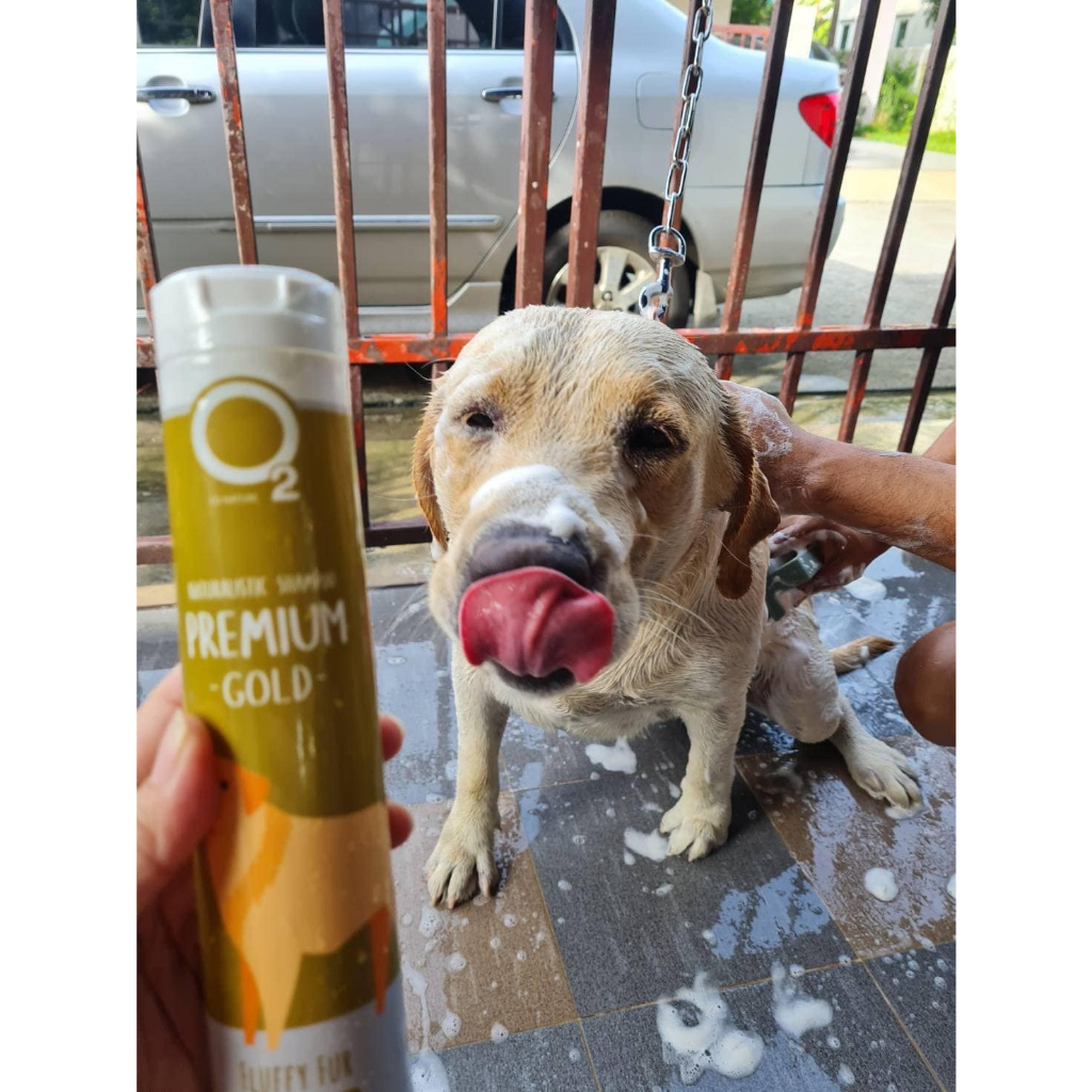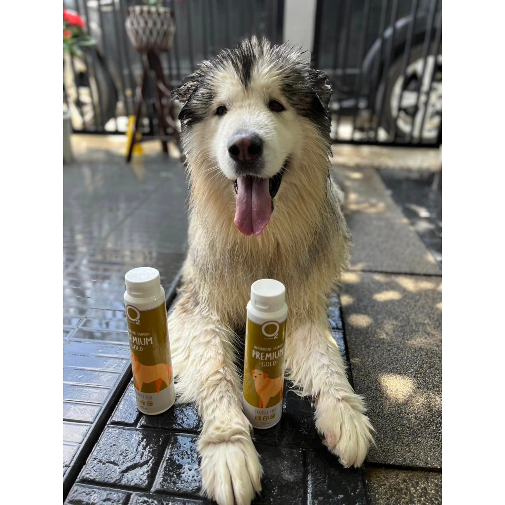 O2 NATURE Gold แชมพูสุนัข แชมพูโอทู ขนนุ่มฟู ลดขนร่วง เชื้อรา สำหรับสุนัขผิวแพ้ง่าย,อักเสปติดเชื้อ