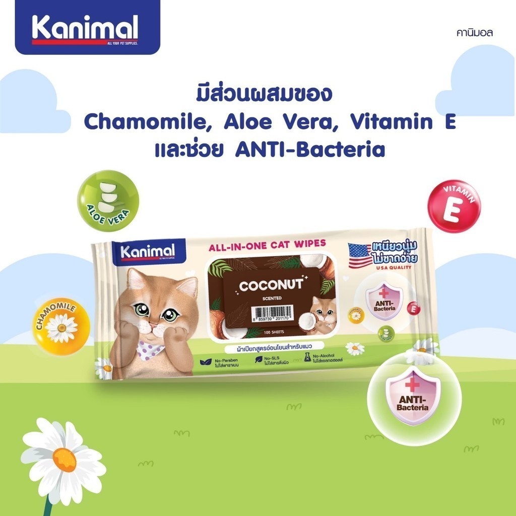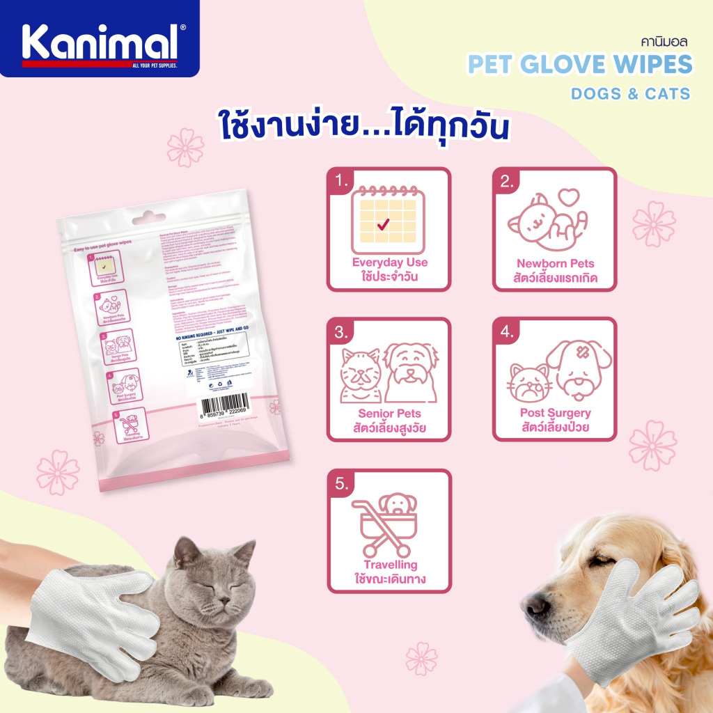 Kanimal Pet Glove Wipes ถุงมืออาบน้ำแห้ง ใช้งานง่าย อ่อนโยน ไม่ระคายเคือง สำหรับสัตว์เลี้ยง (6 Pcs / Pack)