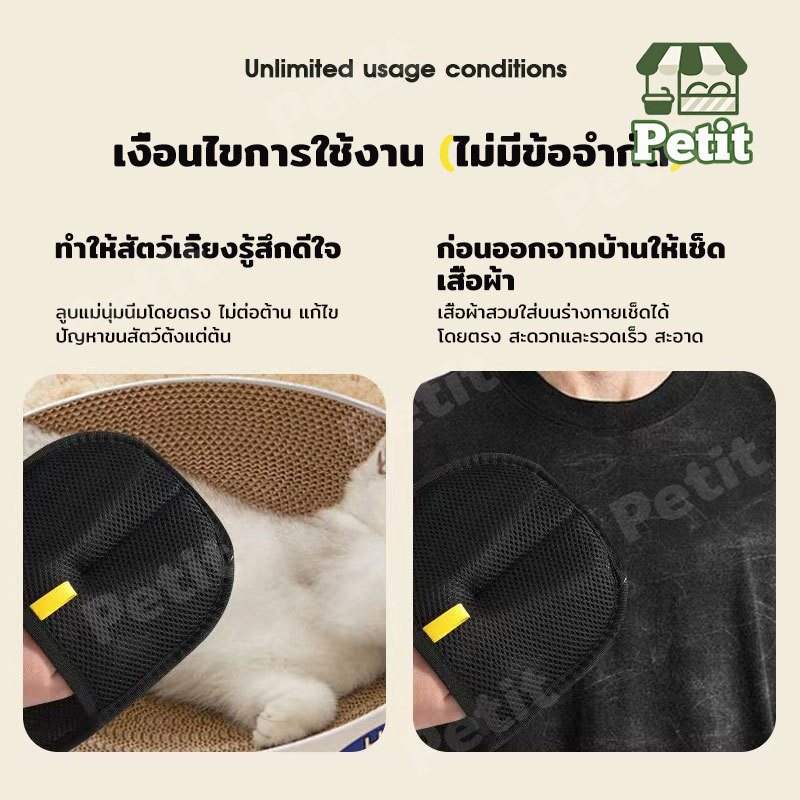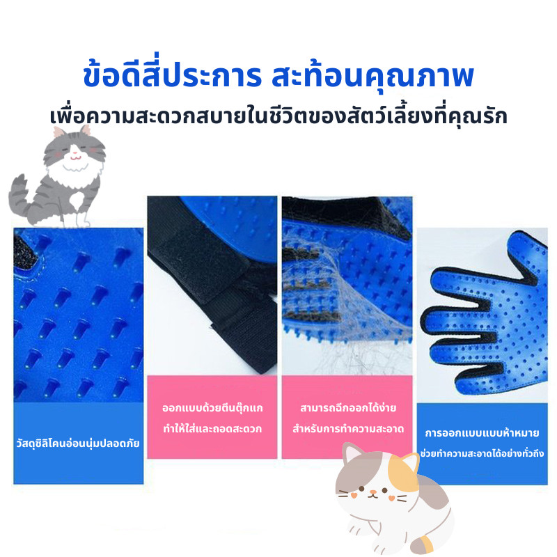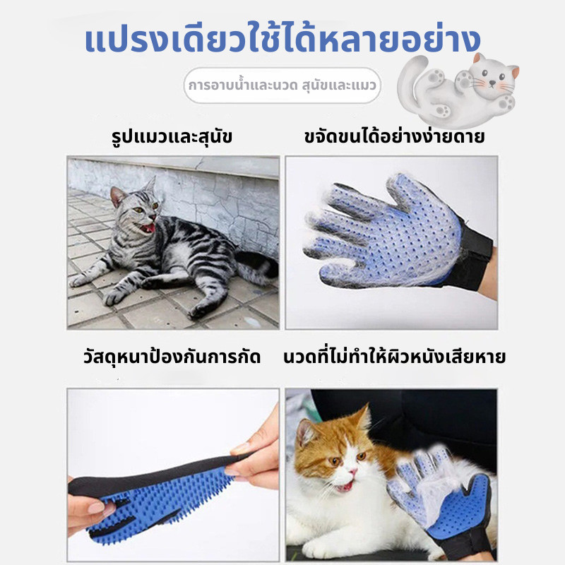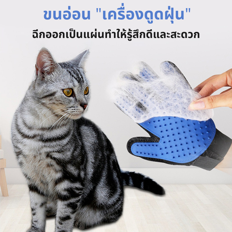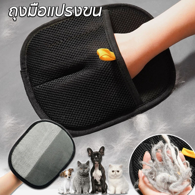 ถุงมือแปรงขนสัตว์เลี้ยง หวีขนแมว สุนัข กำจัดขนง่าย พกพาสะดวก ทำความสะอาดง่าย