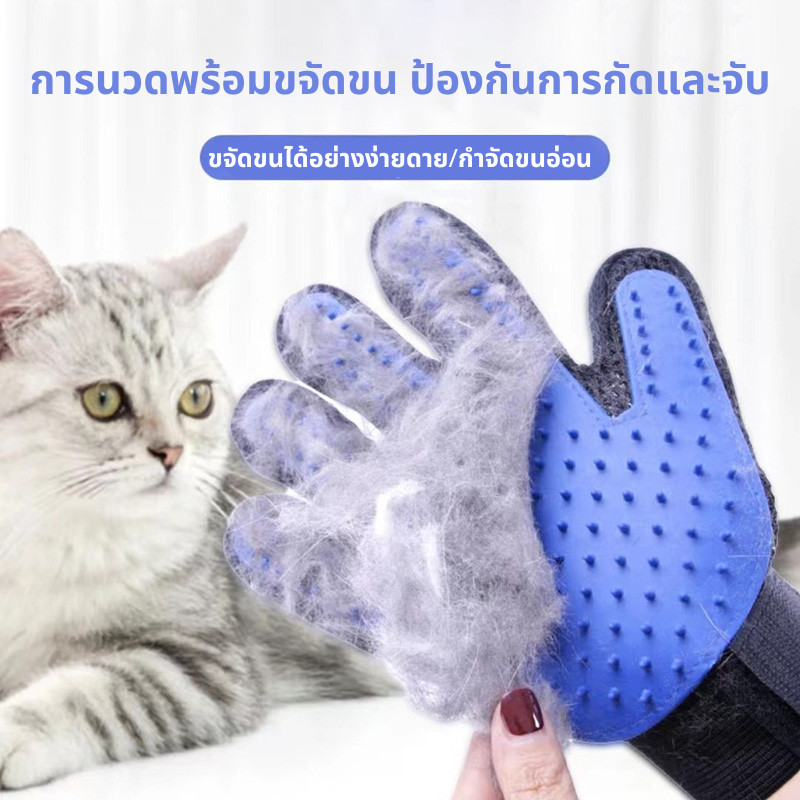 ถุงมือแปรงขนแมวและหมา กำจัดขนสัตว์เลี้าง หวีขนหมาและแมว True Touch Pet the hair ไม่มีกล่อง km99