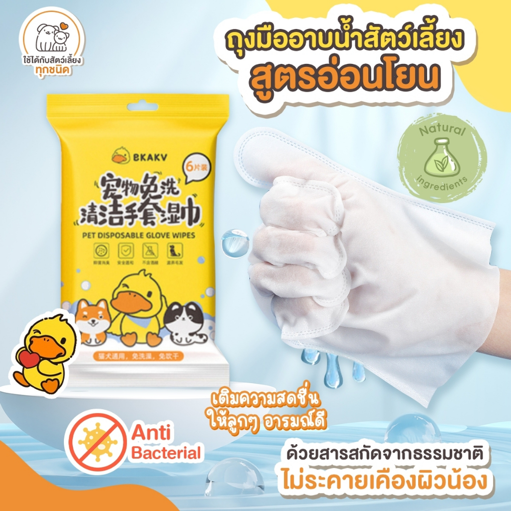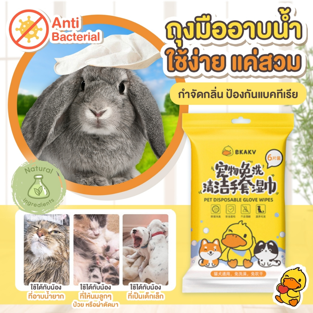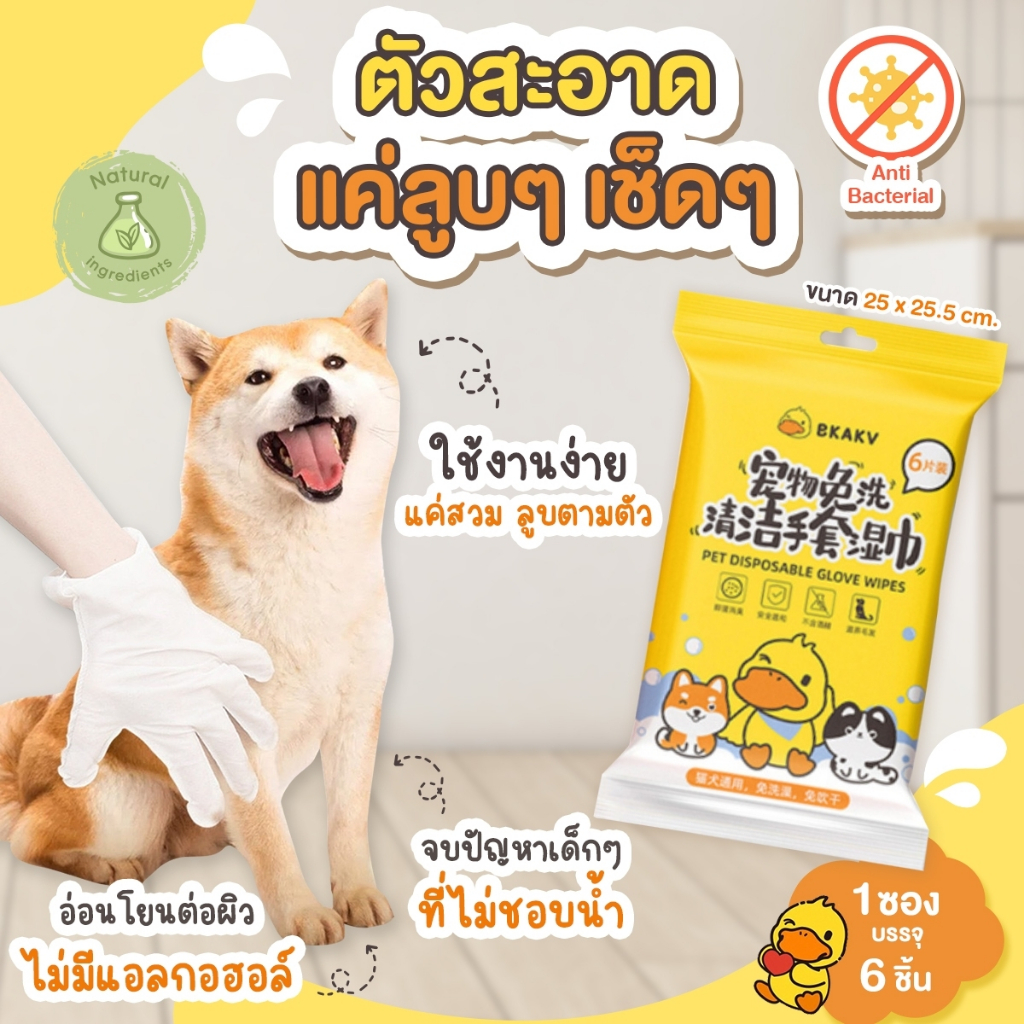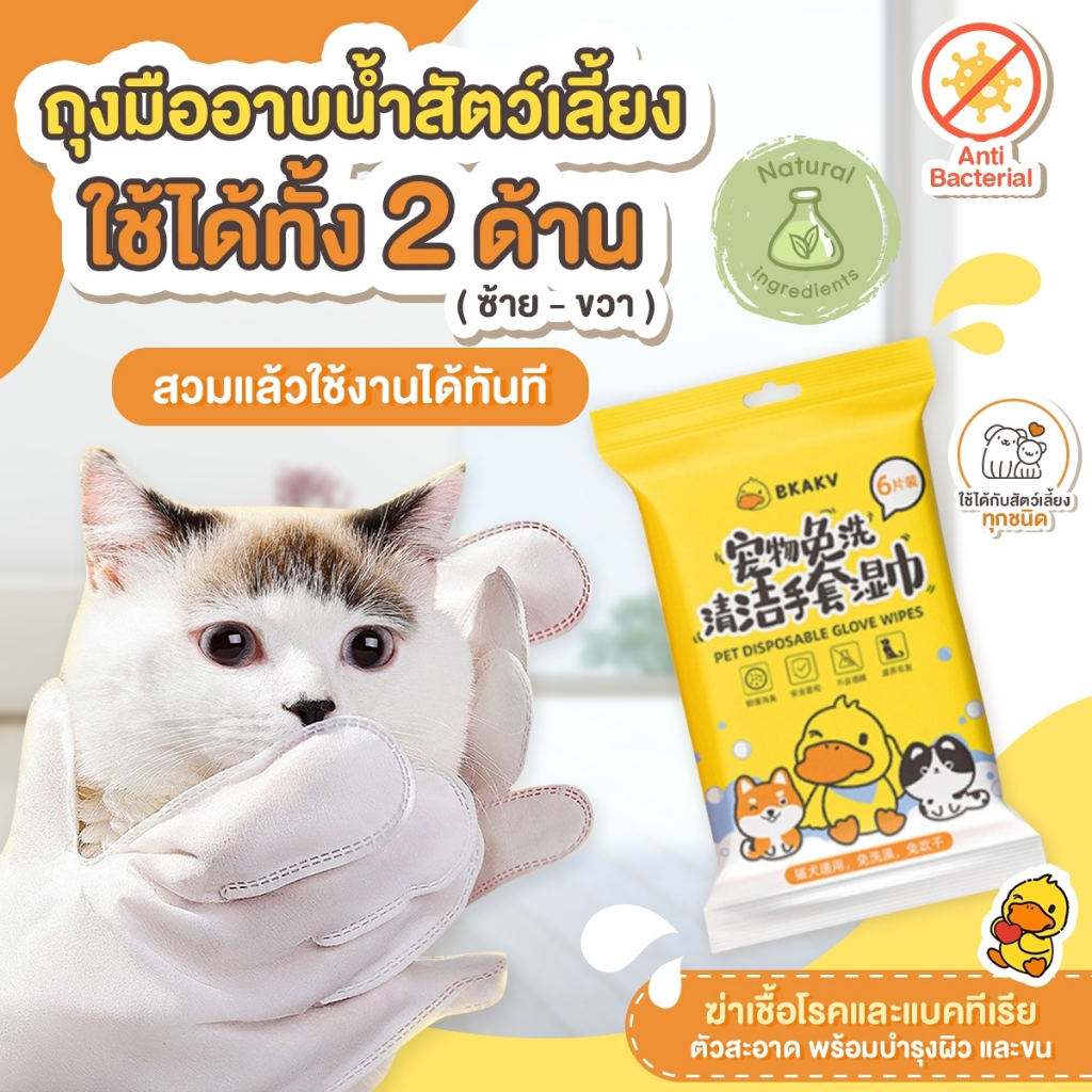 ถุงมือเช็ดตัวสุนัข แมว อาบน้ำสัตว์เลี้ยง ขจัดกลิ่นตัว ชุด6ชิ้น แบบพกพา