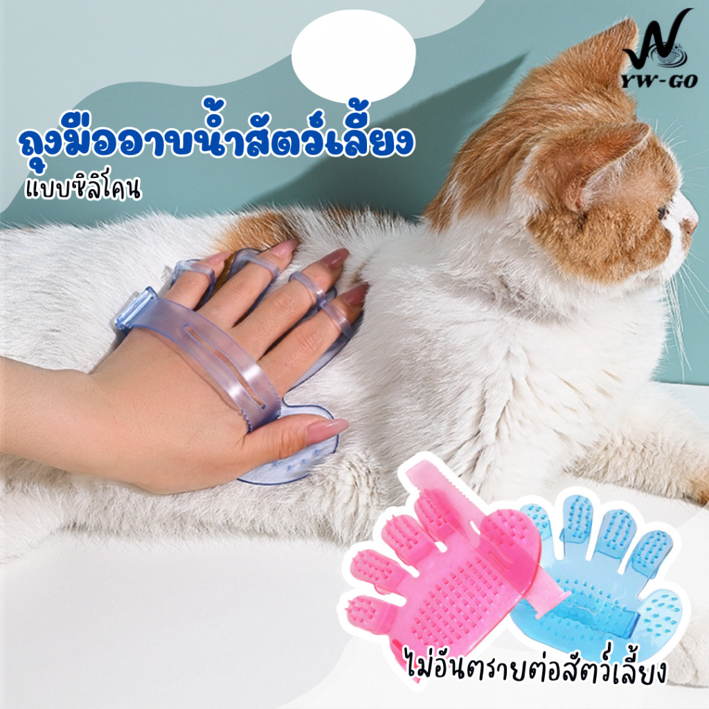 ถุงมืออาบน้ำสัตว์เลี้ยง กำจัดขน การอาบน้ำ อุปกรณ์แปรงขนแมว แปรงขนสุนัข CW19