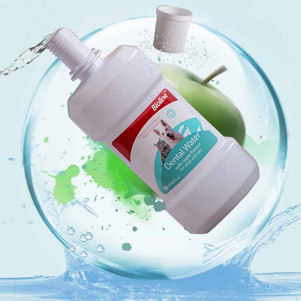Bioline Dental Water ไบโอไลน์น้ำยาดับกลิ่นปากสำหรับสุขและแมว รสแอปเปิ้ล 300ml.(1pcs)