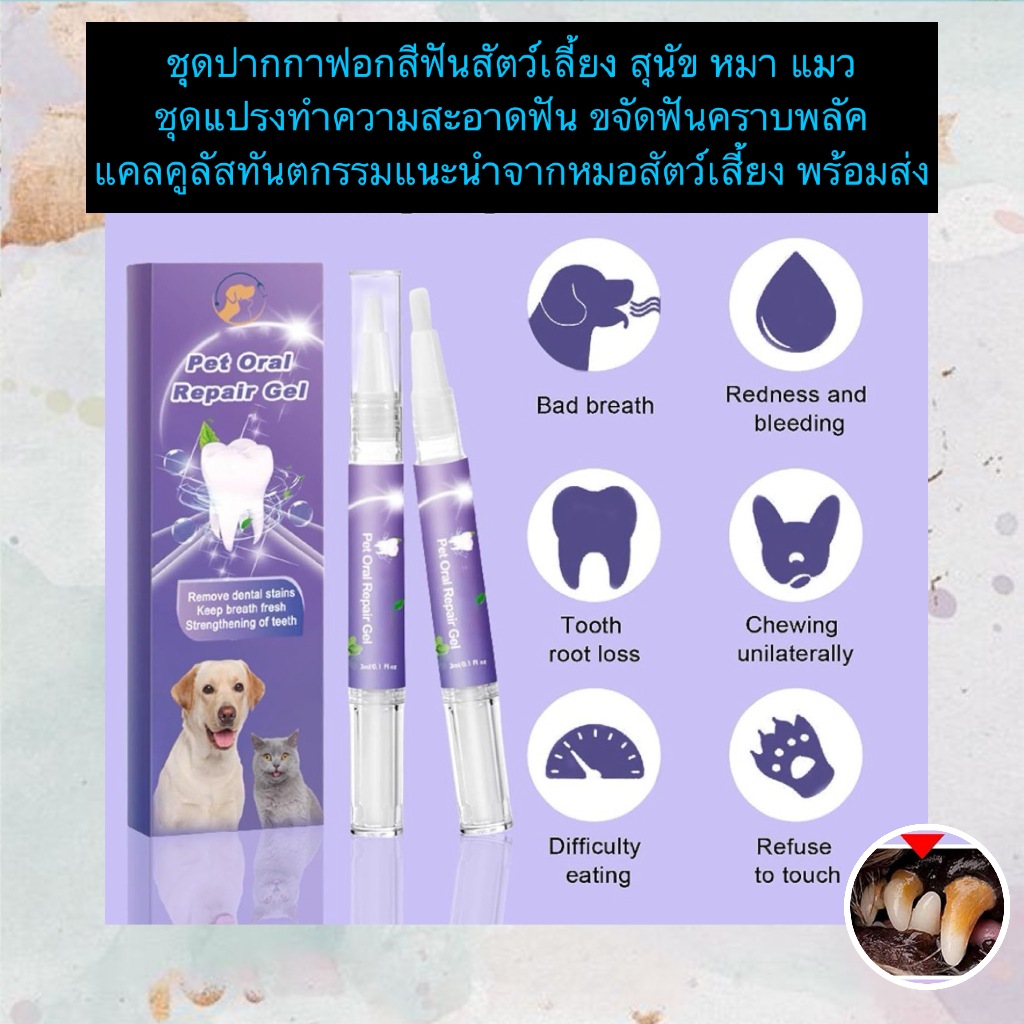 AL-1144 ชุดปากกาฟอกสีฟัน ชุดแปรงทำความสะอาดฟันสัตว์เลี้ยง ขจัดฟันคราบพลัคแคลคูลัสทันตกรรมใช้ได้ทั้งแมวและสุนัข แนะนำจากห