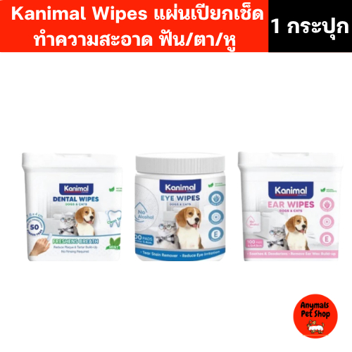 Kanimal Wipes แผ่นเปียกเช็ดทำความสะอาด ฟัน/ตา/หู สำหรับสุนัขและแมว อ่อนโยน ใช้สะดวก