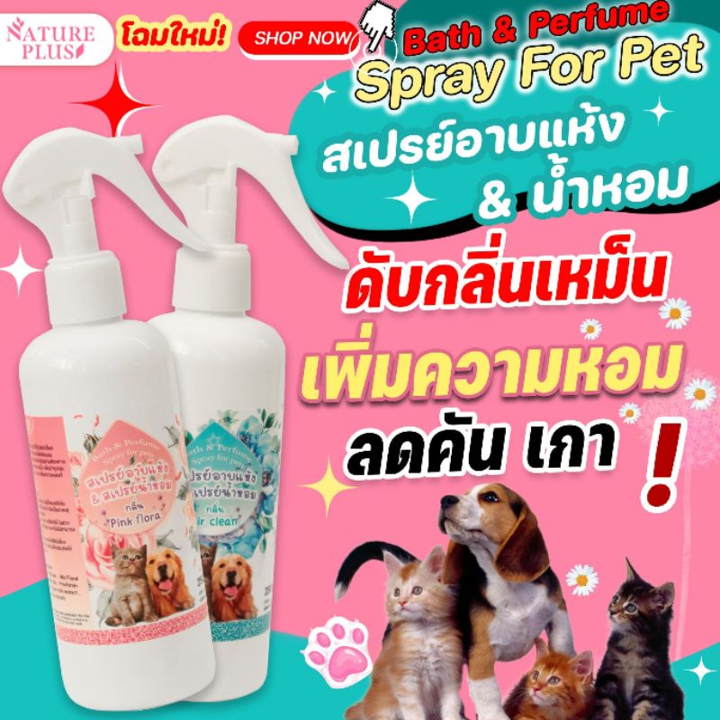 สเปรย์อาบแห้ง สุนัข แมว ป้องกันแบคทีเรีย บำรุงขน กลิ่นหอม – Nature Plus