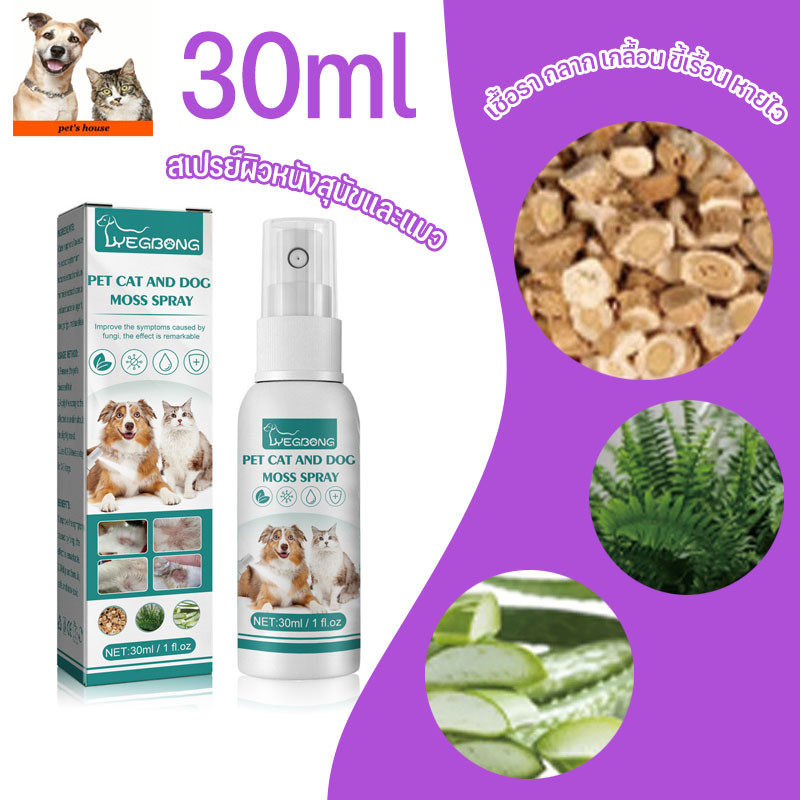 สเปรย์ผิวหนังสุนัขและแมว เชื้อรา กลาก เกลื้อน ขี้เรื้อน หายไว 30ml.การเผชิญหน้า บนผิวหนัง อาการคัน