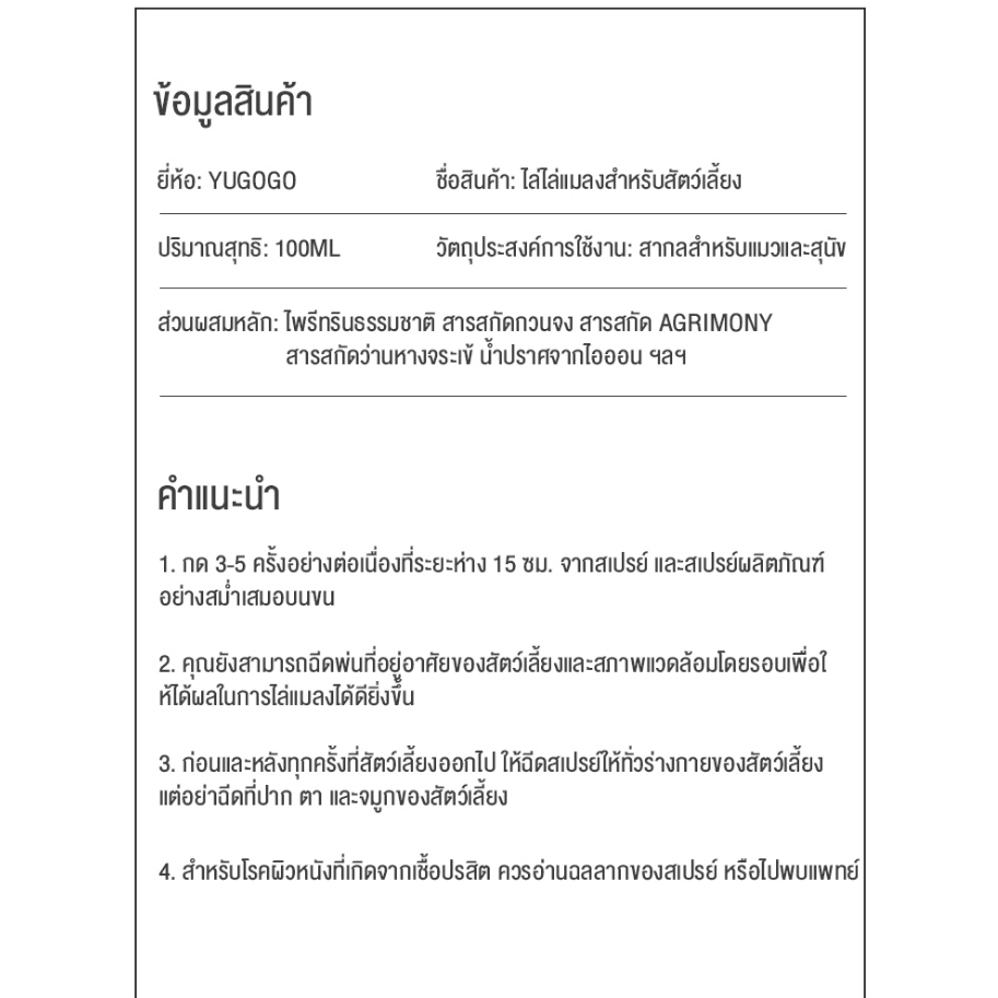 yugogo🐾สเปรย์เห็บหมัด 100ml สเปรย์เห็บ เห็บหมัดแมว สูตรจากธรรมชาติเพื่อขับไล่แมลง ไม่ระคายเคือง