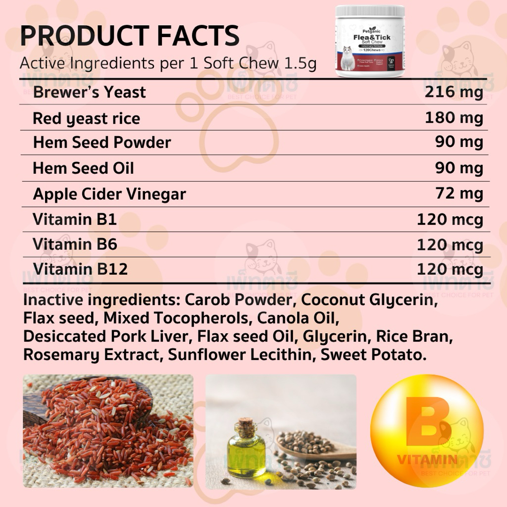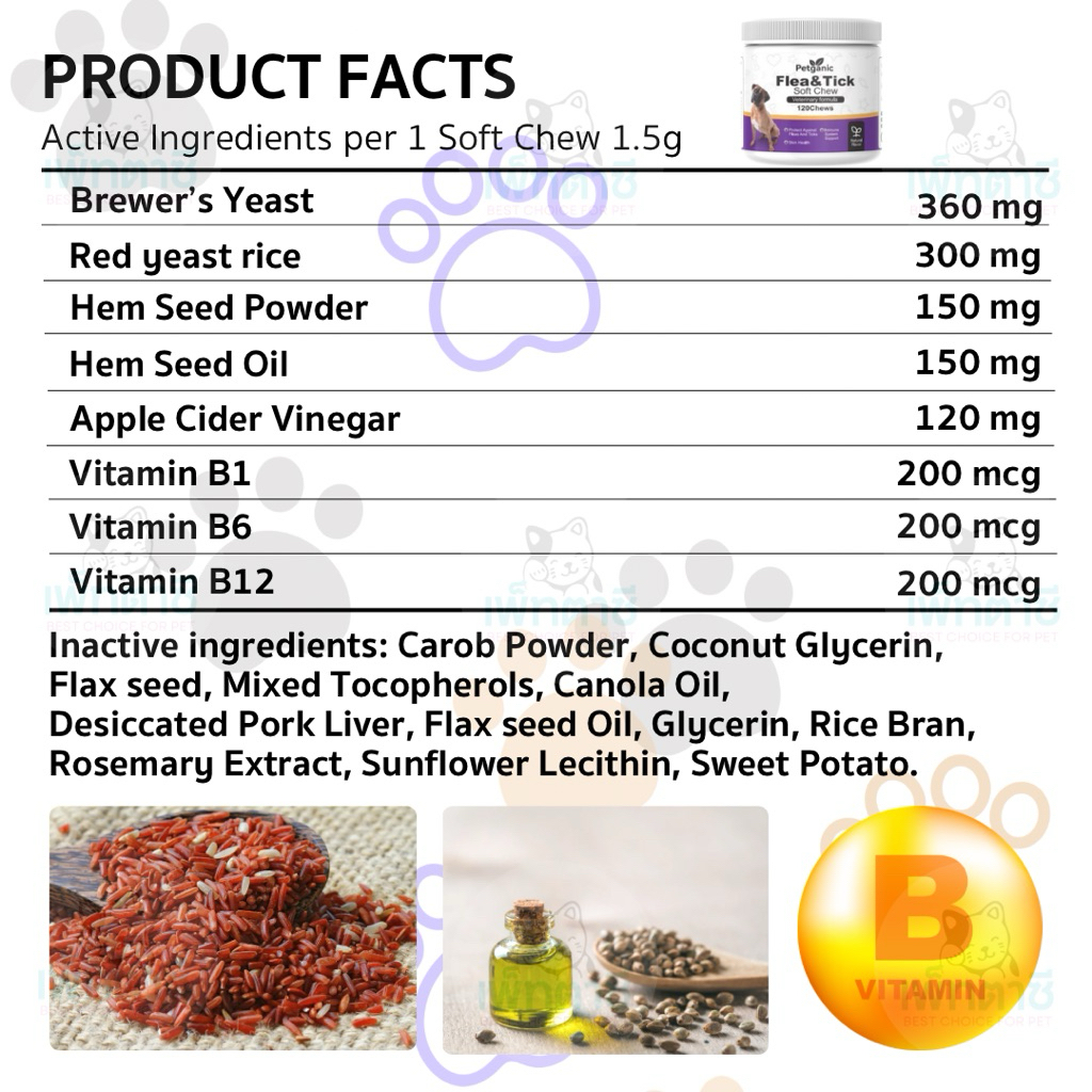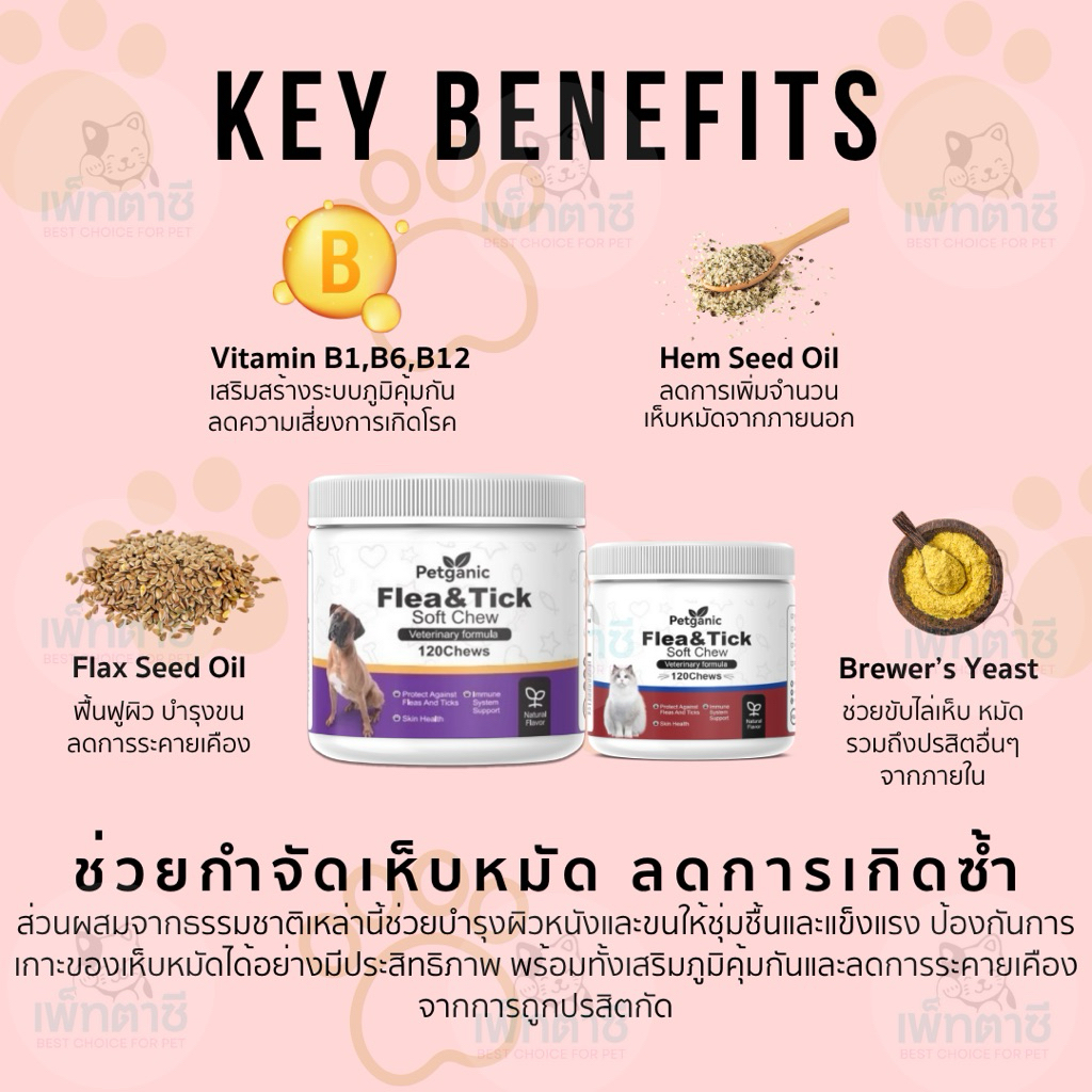 Petganic กำจัด เห็บ หมัด เหา ปรสิตภายนอก สำหรับสุนัข แมว ในรูปแบบขนม ทานง่าย ลดคัน ฟื้นฟูผิวหนัง ขน